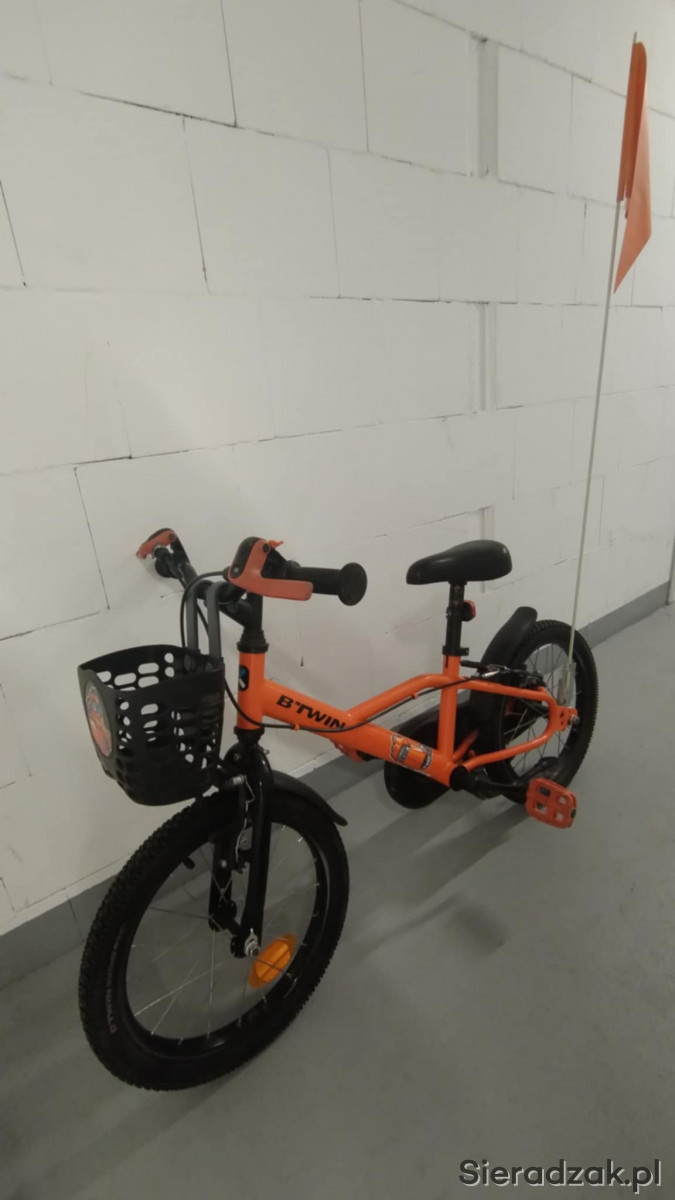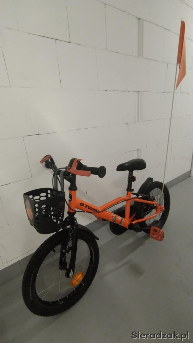 Rowerek w stanie bardzo dobrym z koszykiem i chorągiewką. Do roweru posiadam dedykowane kółka pomocnicze i kij do nauki jeżdżenia.