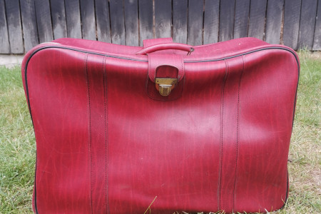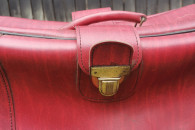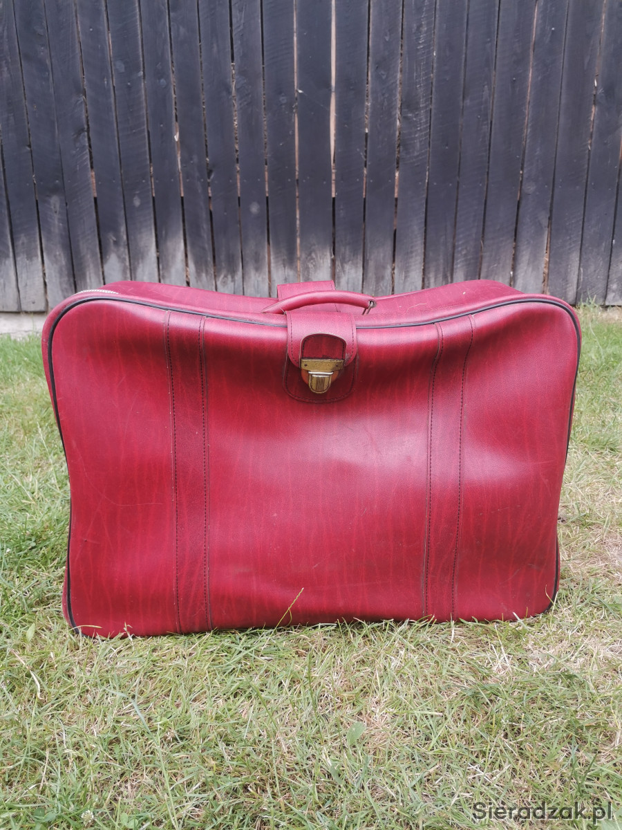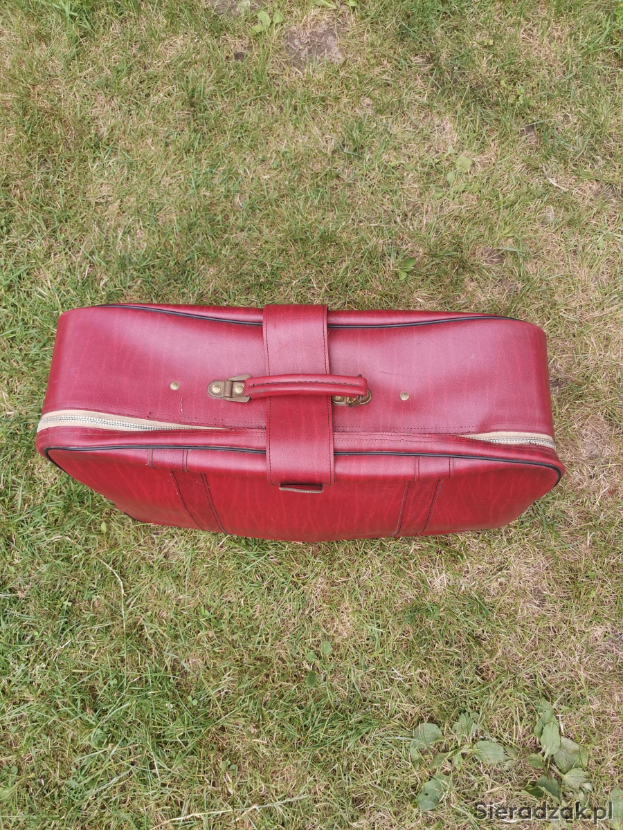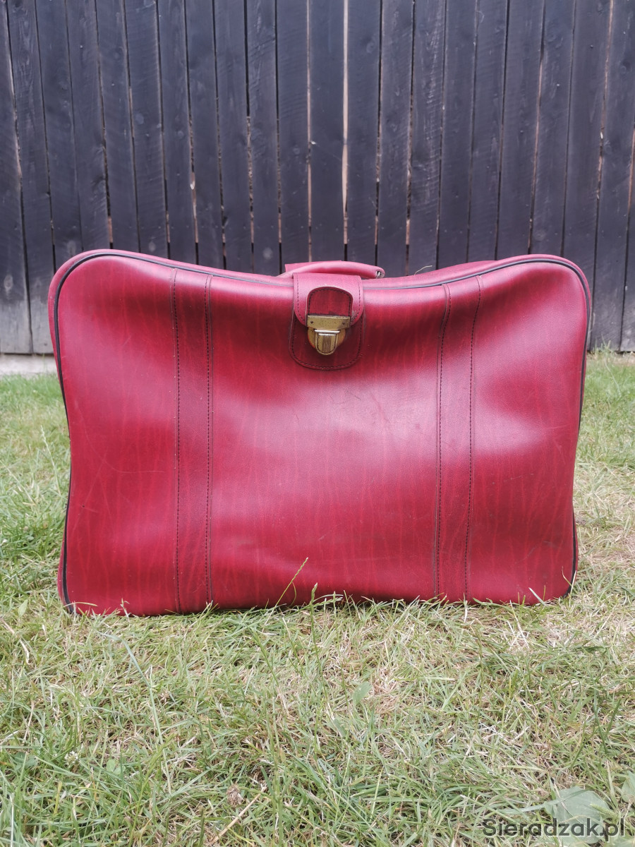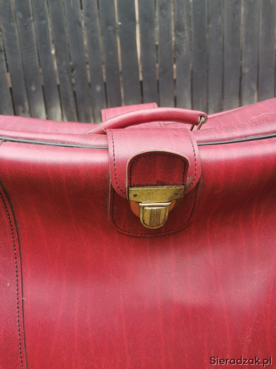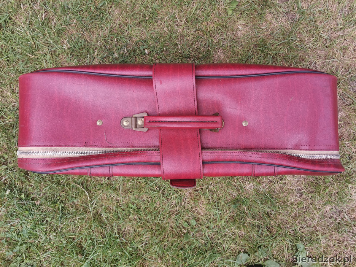 Walizka PRL bordowa czerwona antyk skórzana do zdjęć rekwizyt