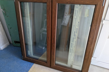 Na sprzedaż okno PCV dwuskrzydłowe w kolorze orzech z wystawki w biurze