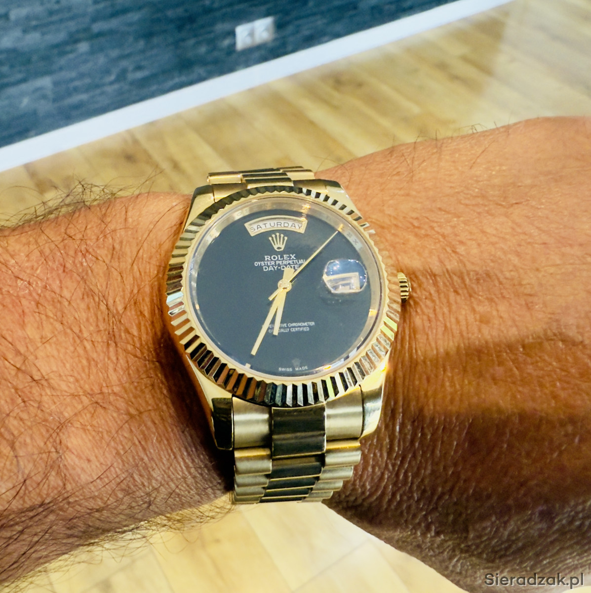 Zegarek posiada rzadką tarcze z onyksu, bransolete prezydencką . Onyx Day-Date to jeden z najbardziej poszukiwanych zegarków z tarcza z kamienia, jakie kiedykolwiek wyprodukowata firma Rolex. Automatic szkło szafirowe , nowy . Bardzo rzadki model trudno dostepny , na żywo prezentuje się niesamowicie sza Zd wola