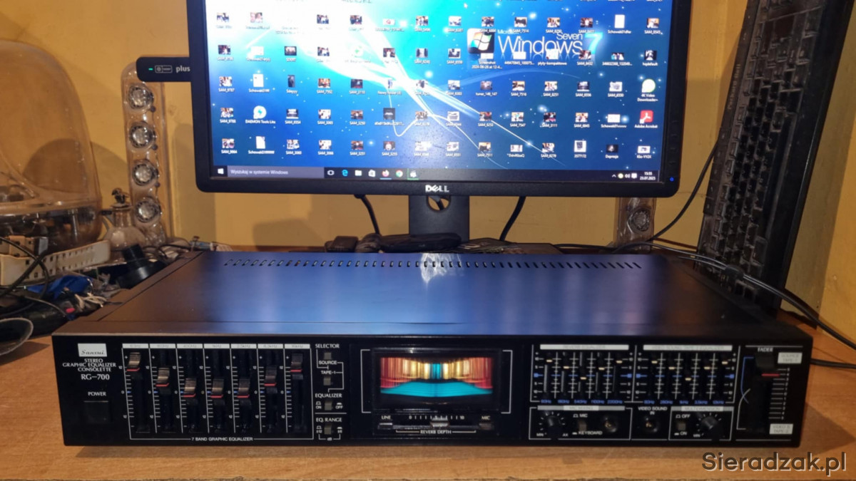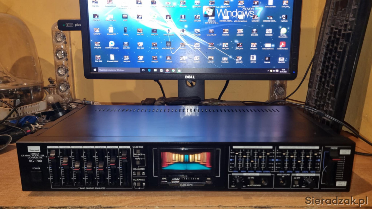 rzadko spotykany korektor graficzny SANSUI RG-700 z funkcją pogłosu (REVERB), efektem poszerzania sceny muzycznej (MULTIDIMENSION) oraz miksera.