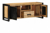 Ta drewniana szafka pod telewizor, z dużą ilością miejsca do przechowywania stanowi praktyczny i przyciągający wzrok dodatek do Twojego salonu lub sypialni.