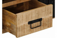 - Metalowe uchwyty: stolik jest wyposażony w metalowe uchwyty zapewniające łatwy dostęp i nadające jego konstrukcji stylowy, industrialny charakter.
