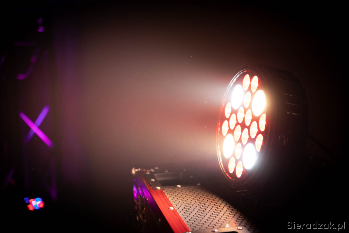Dostępne też inne Efekty świetlne, reflektory PAR LED, listwy belki BAR LED, głowy ruchome, stroboskopy, wytwornice dymu i baniek, statywy oświetleniowe.