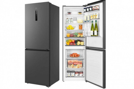 Na sprzedaż lodówka wolnostojąca TCL RP340BSD0 w eleganckim kolorze Quartz Gray. Wysokość 185 cm, pojemność całkowita 340 l (chłodziarka 223 l + zamrażarka 117 l), nowoczesny design i pełny system No Frost eliminujący konieczność rozmrażania.