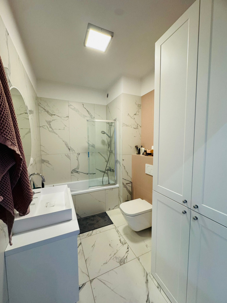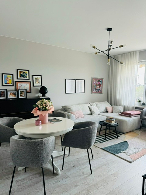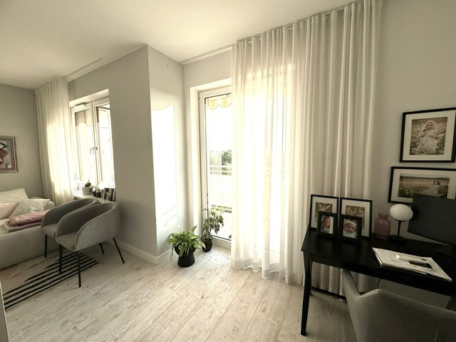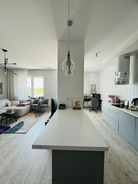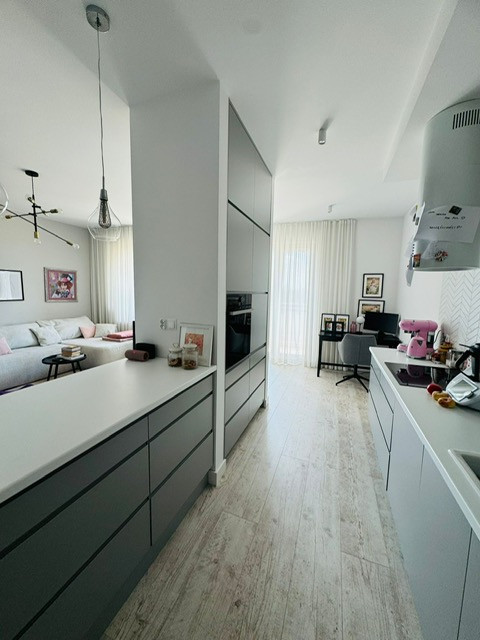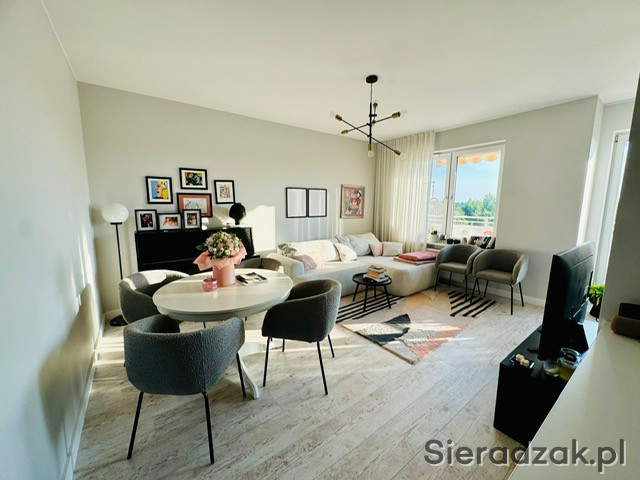 Mieszkanie oferuje przestrzeń i funkcjonalność w nowoczesnej aranżacji.