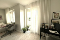 - salonu połączonego z kuchnią z wyjściem na duży balkon typy loggia,