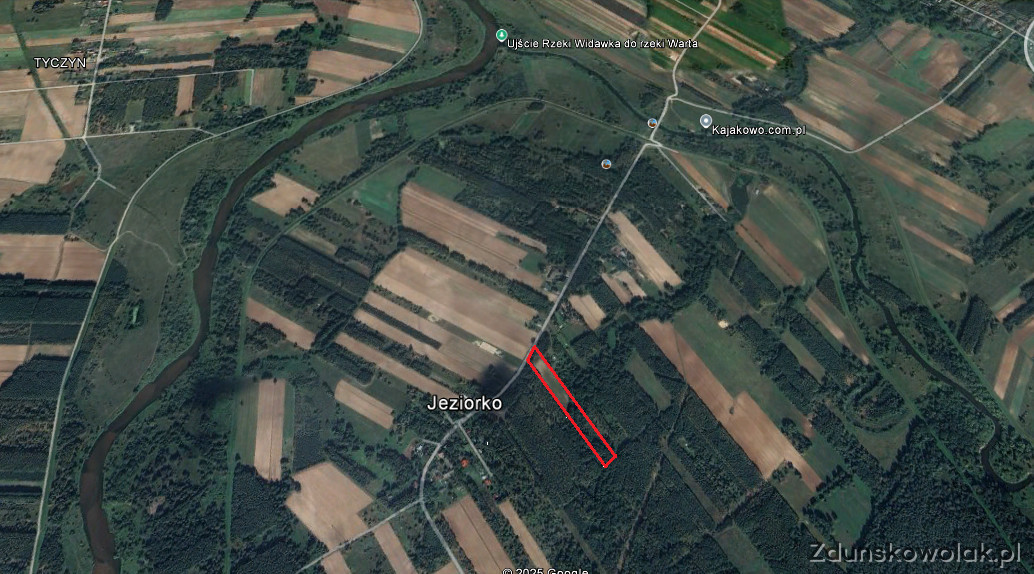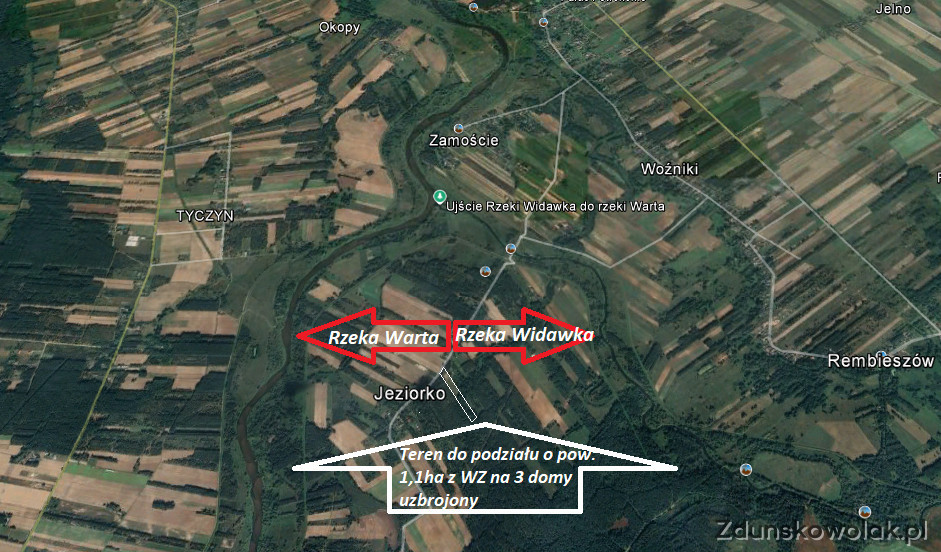 Teren, na którym znajduje się nieruchomość, cechuje się samą naturą dookoła lasy. Działka usytuowana jest między rzeką Warta a Widawką, gdzie często organizowane są spływy kajakowe. Wyjątkowy teren dla osób lubiących kąpiele oraz łowienie ryb.