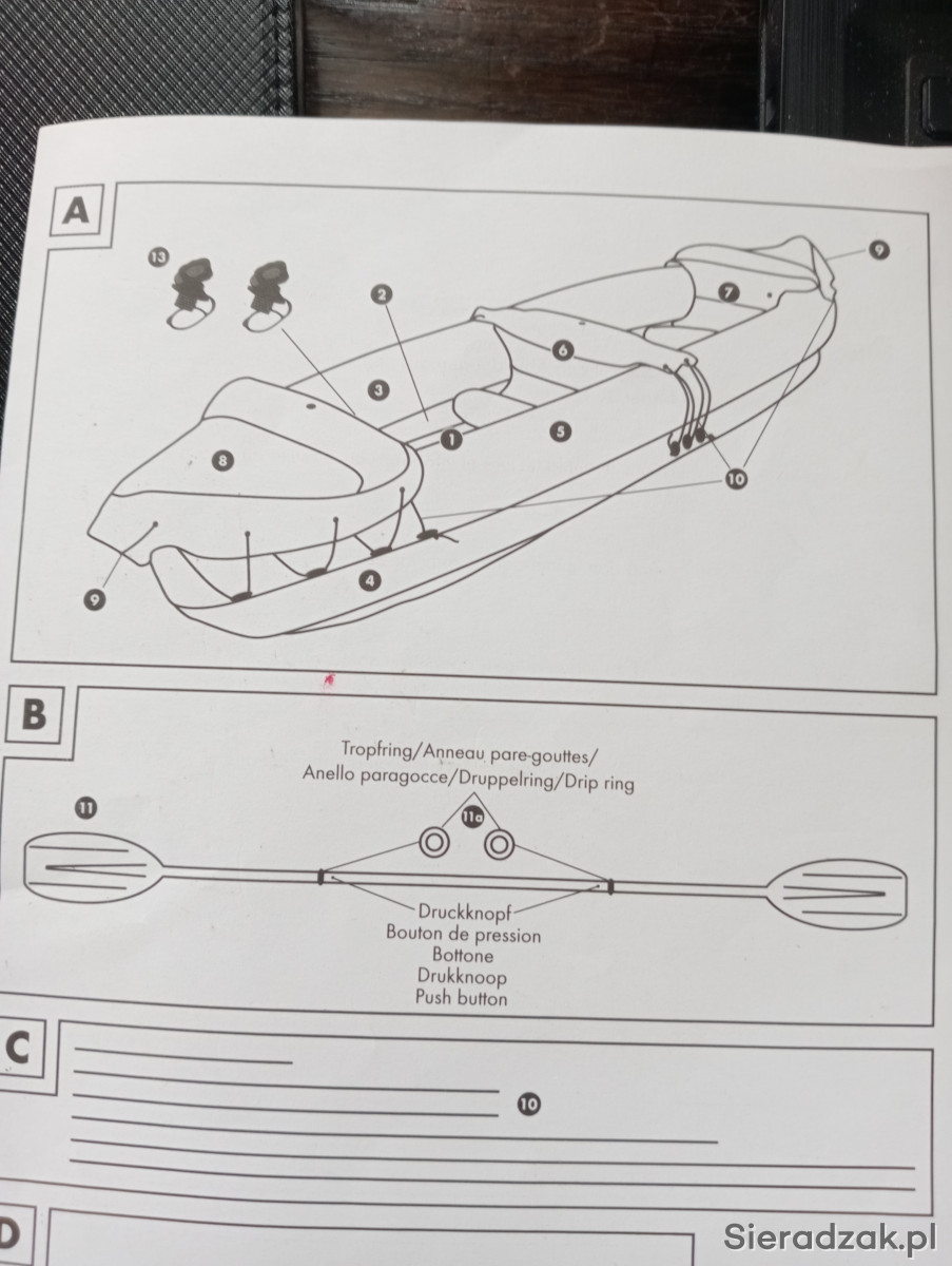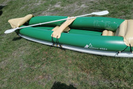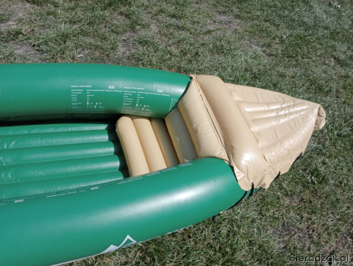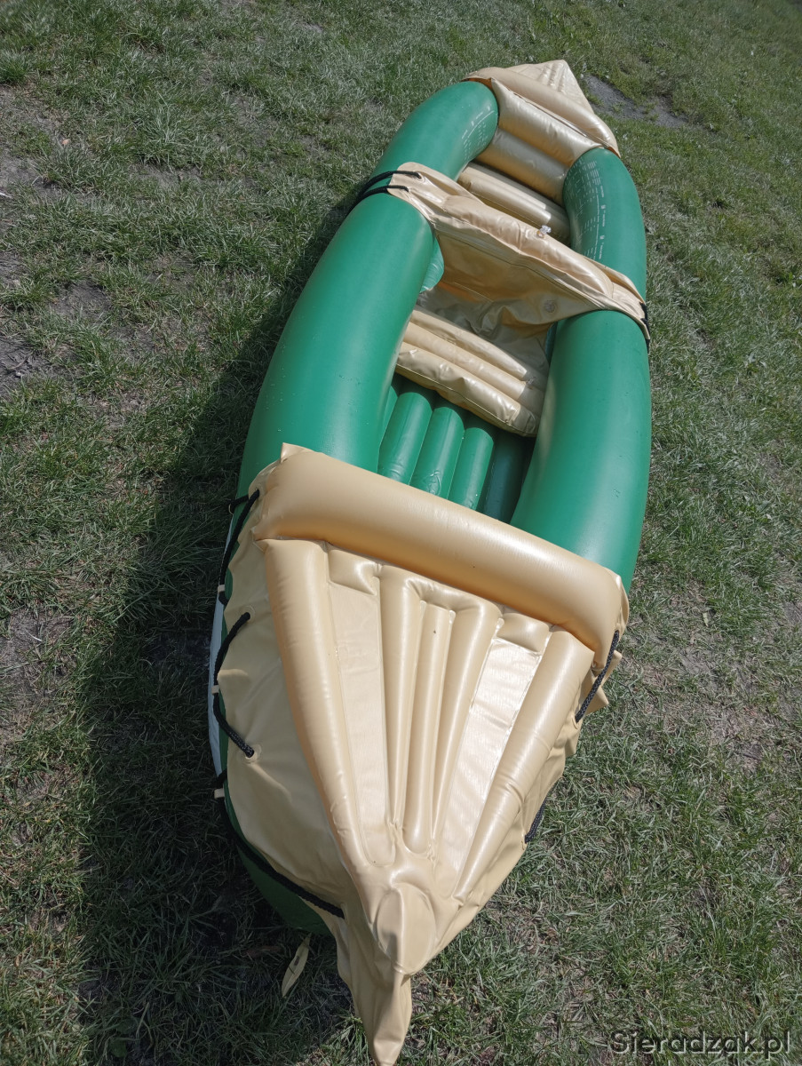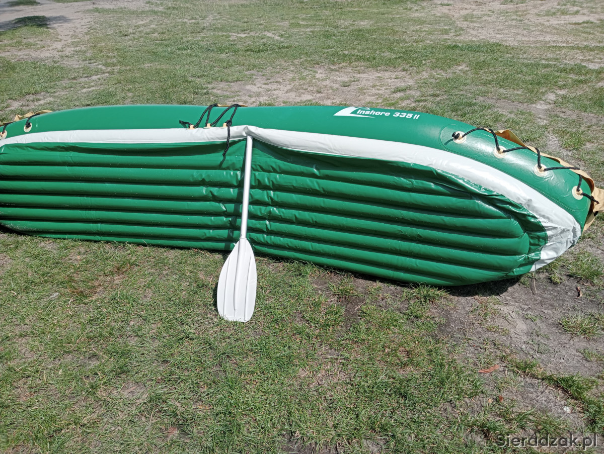 Kajak dmuchany dla dwóch osób wyposażone w jedno aluminiowe wiosło w bardzo dobrym stanie używany dwukrotnie dołączam pompkę na prąd stan bardzo dobry polecam