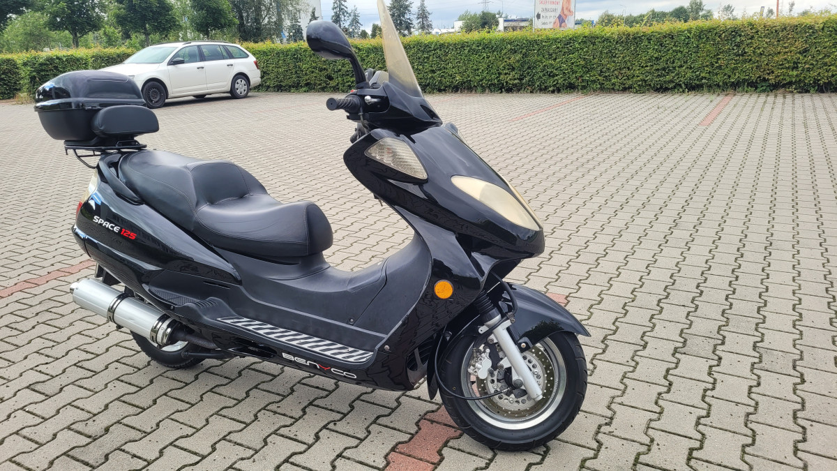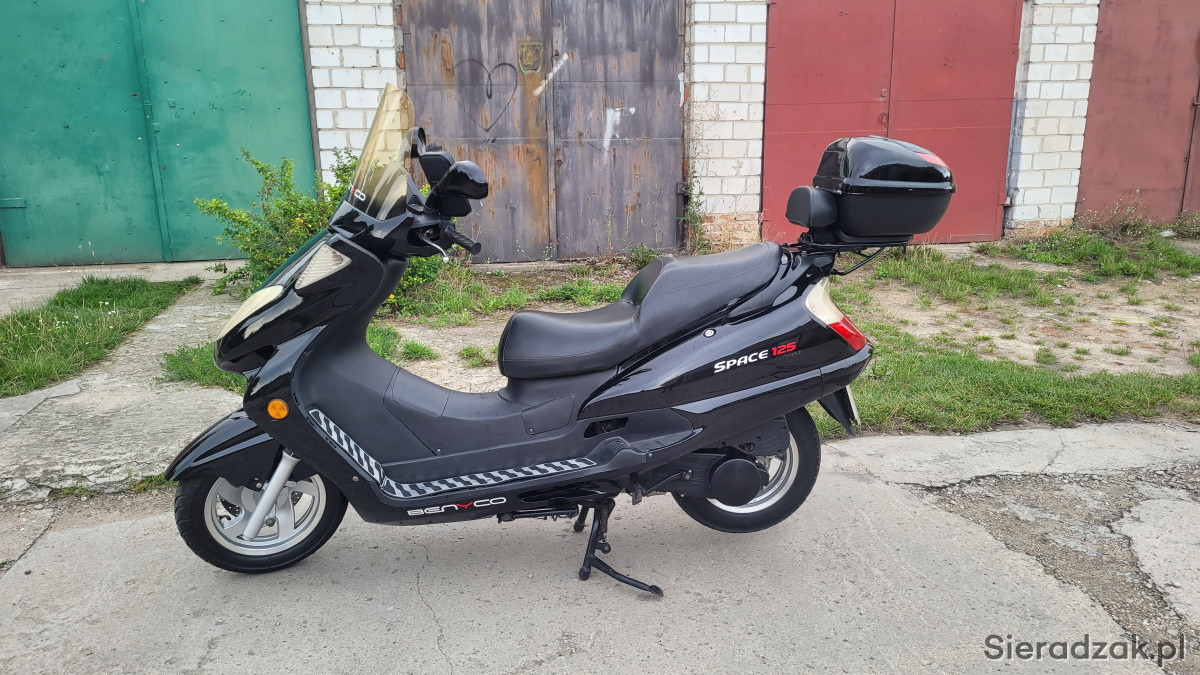 Sprzedam Skuter BENYCO SPACE !25.Rok prod.2014 zakupiony w Polskim salonie.Niski przebieg 5200km.Skuter bardzo zwinny i dynamiczny a zarazem oszczędny(srednie spalanie ok 3,3-5l/100km) w ostatnim czasie wymieniony olej,swieca zapłonowa,filtr powietrza.Sprawuje sie rewelacyjnie w warunkach miejskich jak i w dalszych podróżach.Skuter cały i kąpletny,platiki nie popękane,oryginalny lakier,odpala bez problemu,osprzęt typu hamulce, swiatła,klakson sprawne w 100%.OC i Badanie techniczne ważne do IV-2026r.Więcej informacji udzielę telefonicznie.