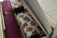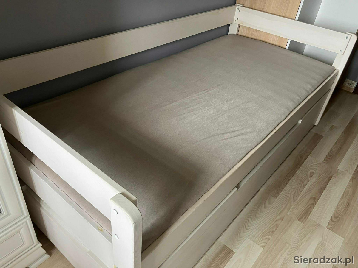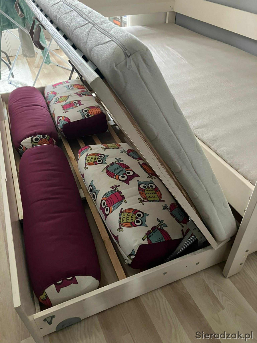 mam do sprzedania łóżko rozkładane ze skrzynią na pościel. Wymiary ramy łóżka 210x96. W komplecie dwa materace 90x200 i ozdobne poduszki.