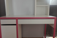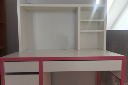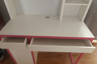 Witam, mam do sprzedania biurko młodzieżowe z nadstawką (Micke ze sklepu IKEA). Biurko jest w stanie bardzo dobrym, poza niewielkim uszkodzeniem powierzchni blatu w postaci śladu po kleju - na zdjęciu widoczne.