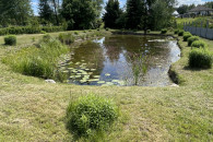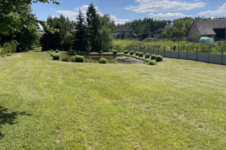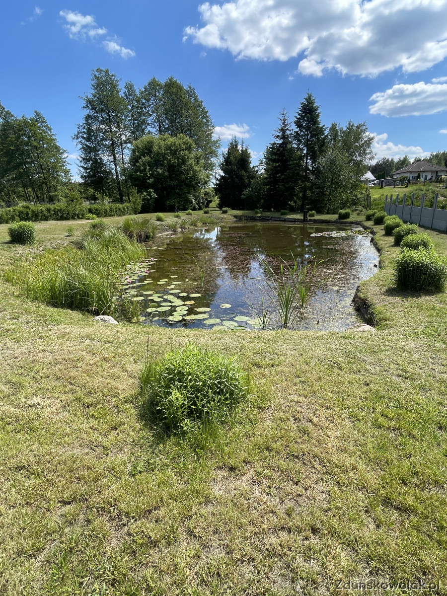 Na terenie znajduje się staw, strumyk i własny kawałek lasu – idealne miejsce na dom w otoczeniu natury.