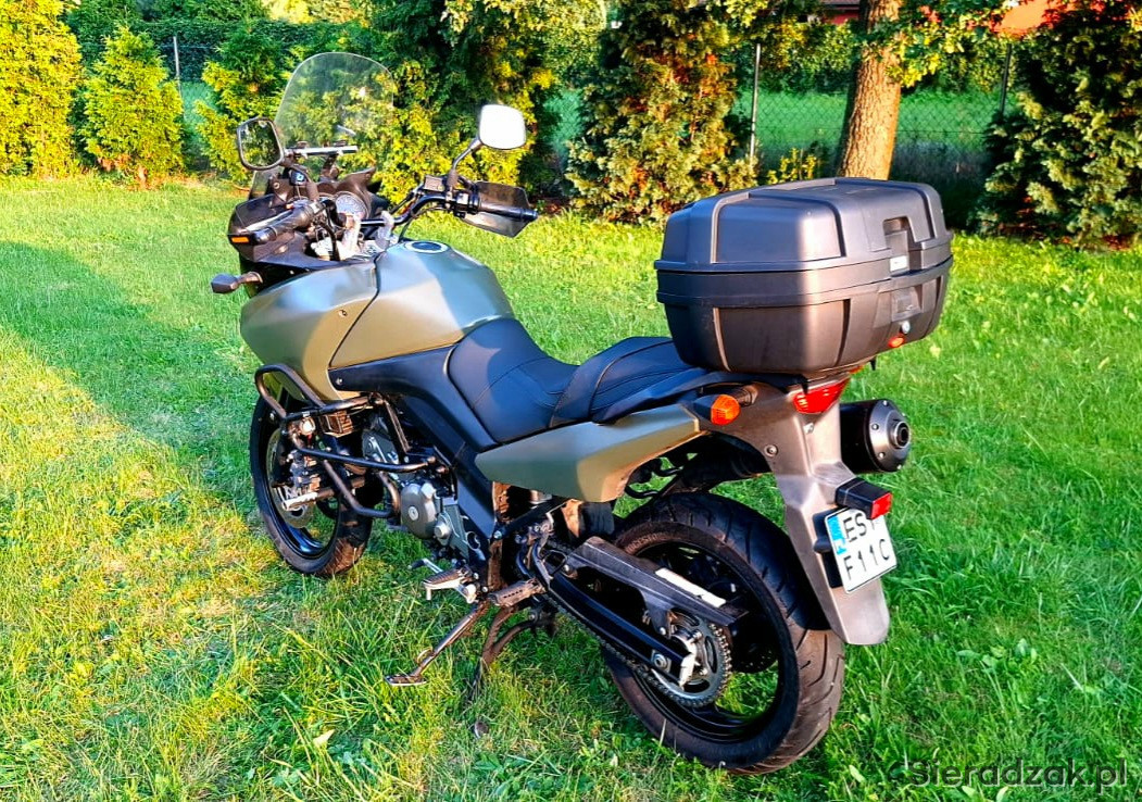 Suzuki Vstrom DL650 z 2006 r. Przebieg 75000 km. Opony Bridgestone nowe założone w 2024 r. Wzmocnione przewody hamulcowe. Licznik biegów. Gmole. Dodatkowe reflektory LED. Motocykl bezwypadkowy. Nie bierze oleju. Ostatnia wymiana oleju i filtra czerwiec 2025. Kufer mieszczacy 2 kaski około 55 litrów. Kolor khaki ( zdjęcie nie oddaje koloru w pełni ).