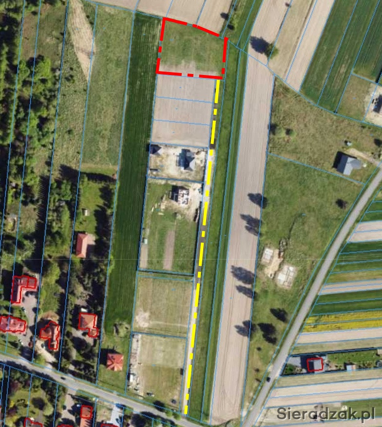Działka położona na obrzeżach Sieradza w cichej i spokojnej okolicy. Wokół zabudowa jednorodzinna oraz pola uprawne.