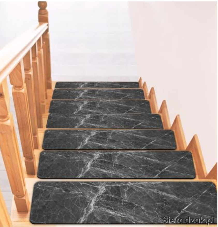 GOYLSER Antypoślizgowe maty dywaniki schodowe 76 x 20 cm; 15 sztuk/op; grubość-8mm (model: XJLTD-01 Black Marble)