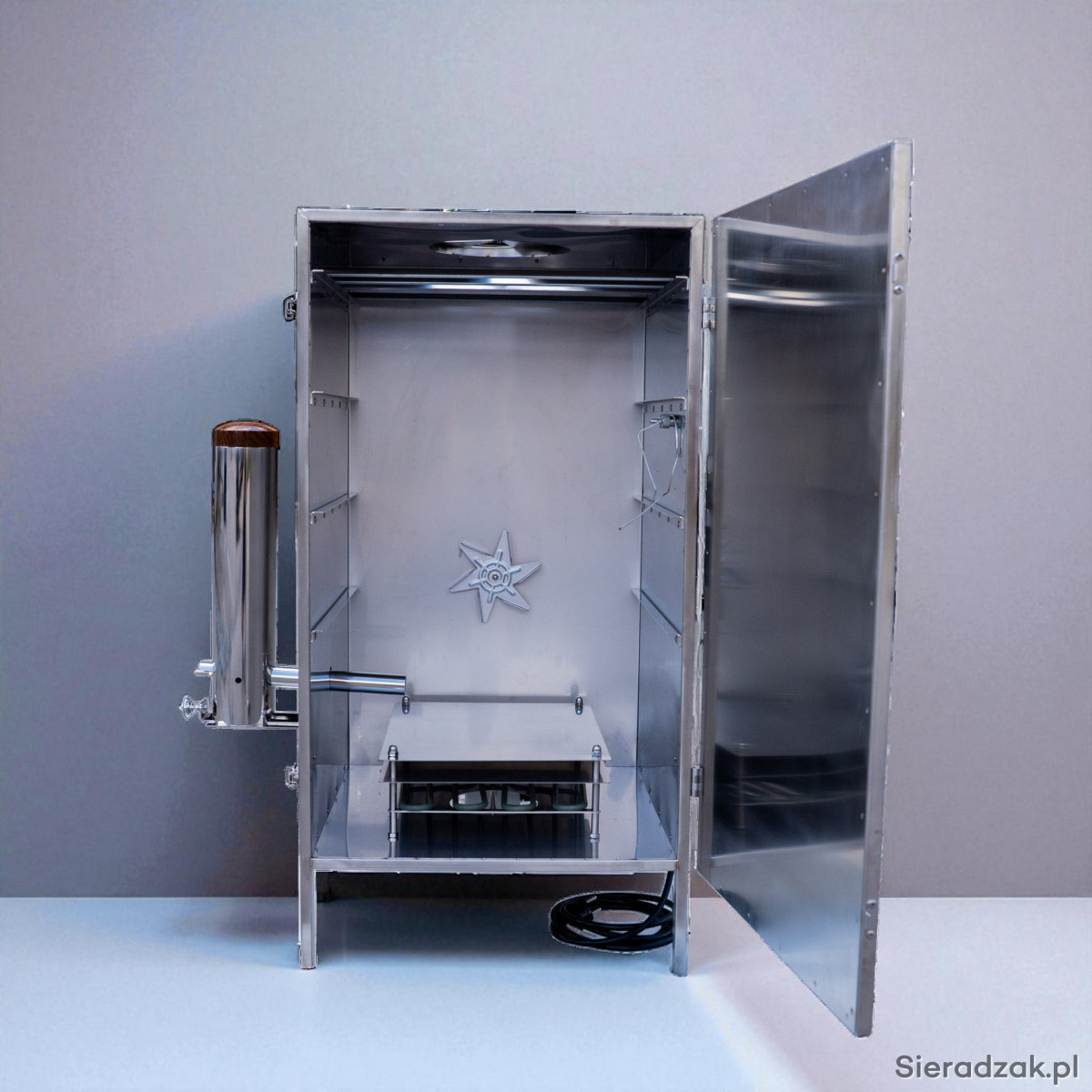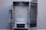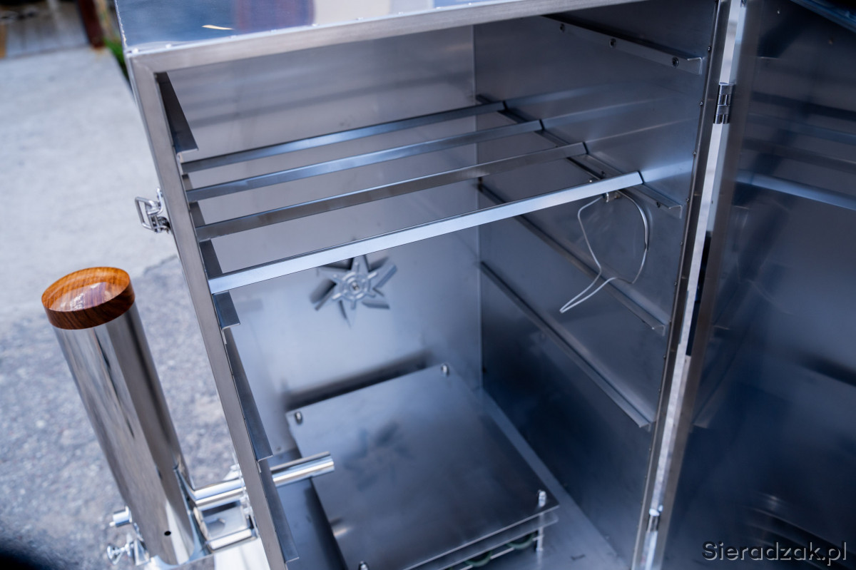 Wędzarnia została w całości wykonana z wysokogatunkowej stali nierdzewnej, co gwarantuje trwałość, odporność na korozję i łatwość utrzymania w czystości. Dodatkowo komora została zaizolowana matą kauczukową, co skutecznie ogranicza straty ciepła i pozwala na jeszcze lepszą kontrolę temperatury podczas całego procesu wędzenia.