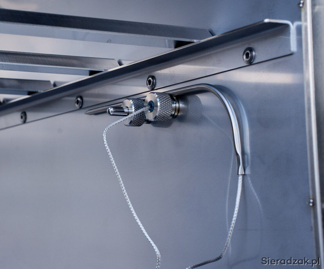 Wędzarnia wyposażona jest w dwa niezależne czujniki temperatury: jeden mierzy temperaturę wewnątrz komory, drugi – bezpośrednio w środku wędzonego produktu. Dzięki temu masz pełną kontrolę nad procesem wędzenia i pewność, że mięso osiągnie idealną temperaturę – bez ryzyka niedopieczenia lub przesuszenia.