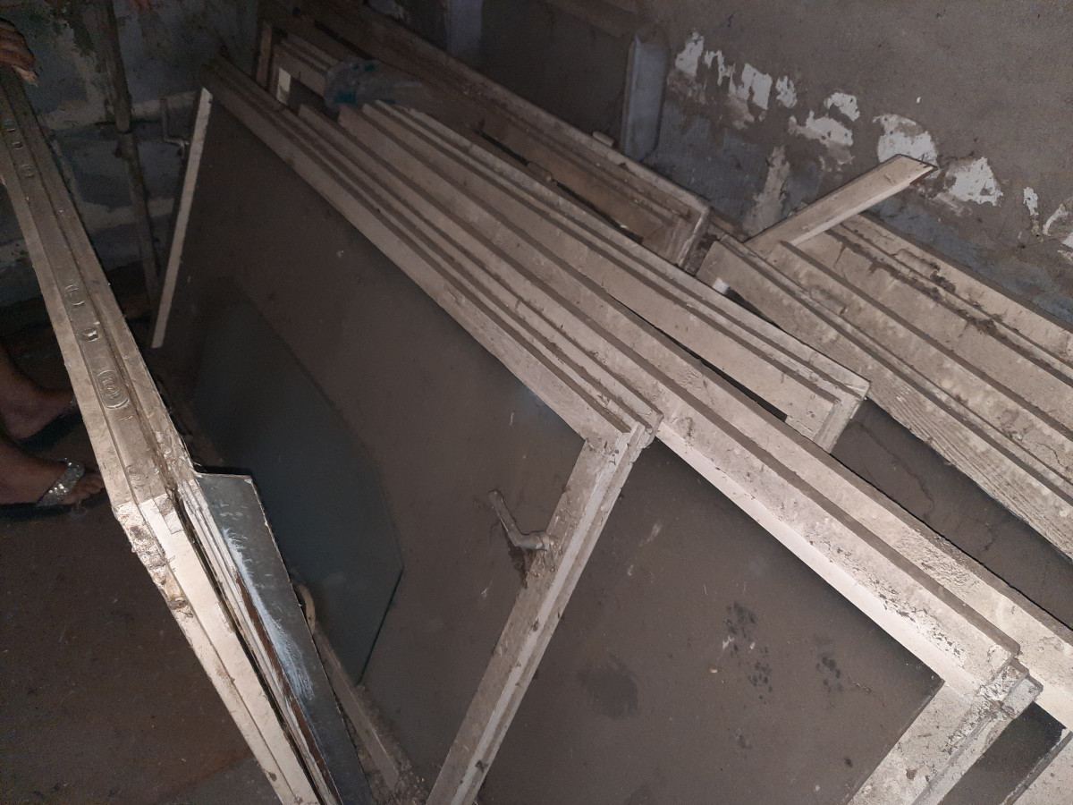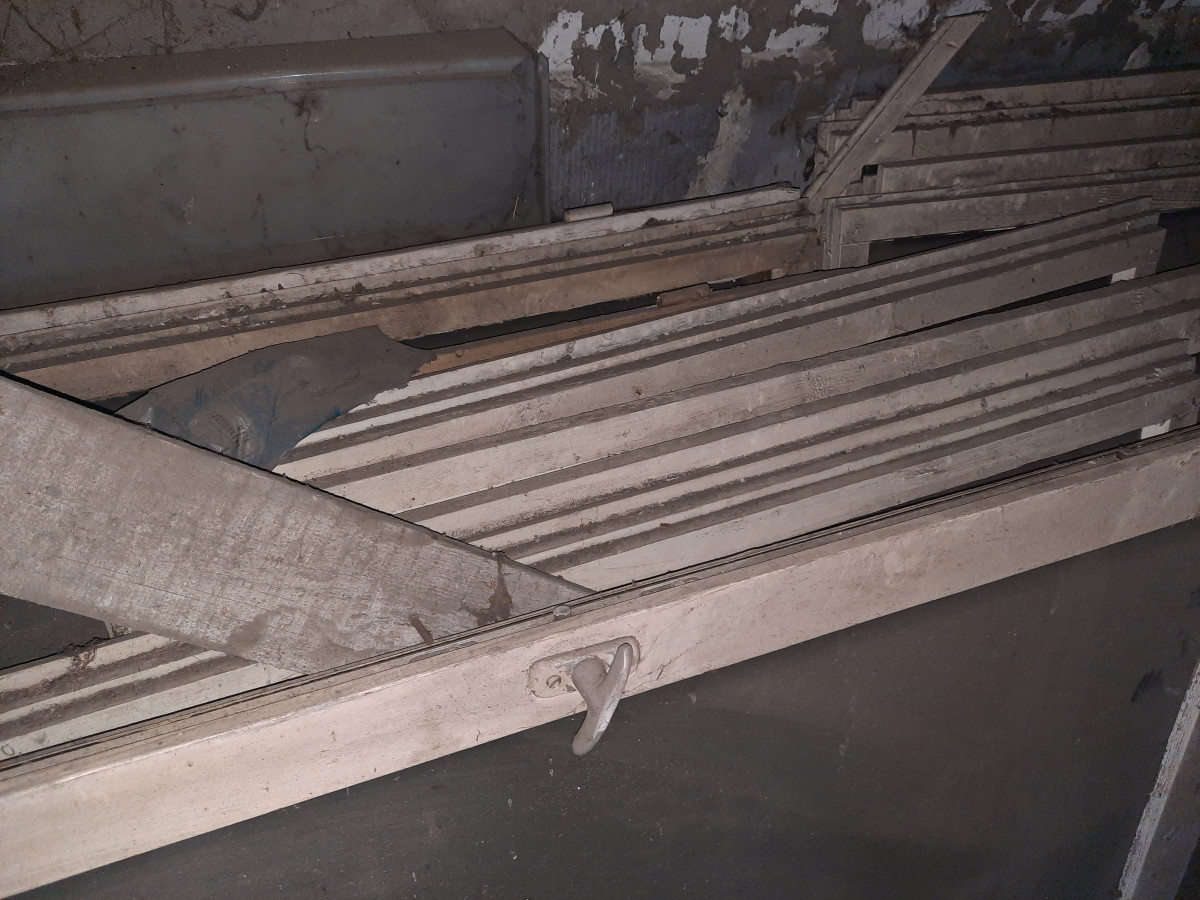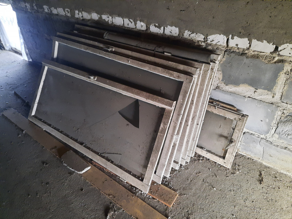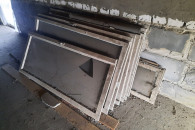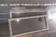 Stare okna drewniane do garażu lub warsztatu.