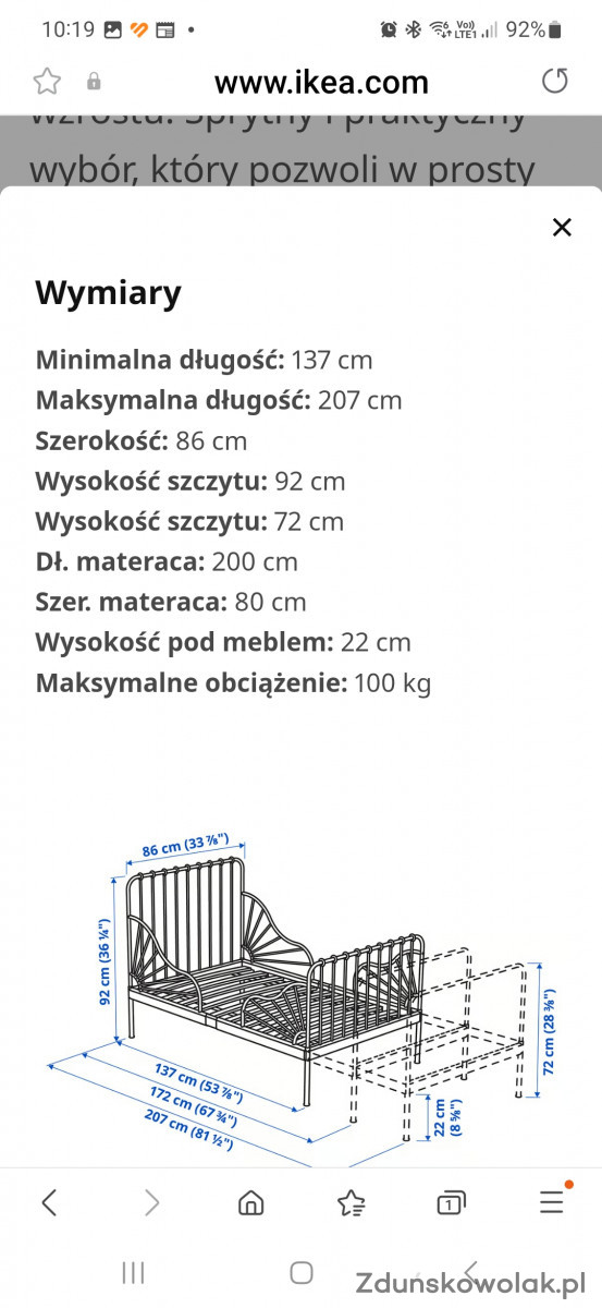 Sprzedam łóżko z materacem ikea rozsuwane rośnie razem.z dzieckiem. Wymiar min 80x137max 80x207. W bardzo.dobrym.stanie