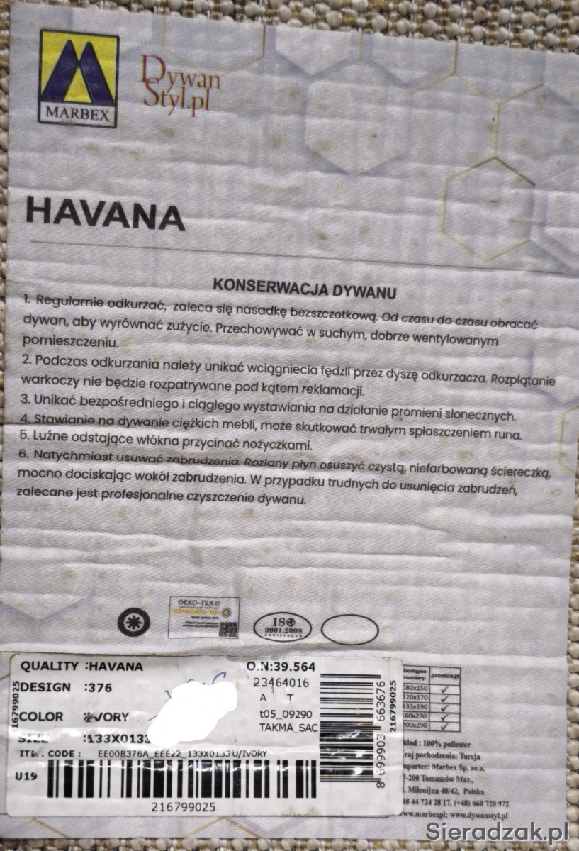 Sprzedam dywan Havana o rozmiarze 133x133 koło w idealnym stanie.