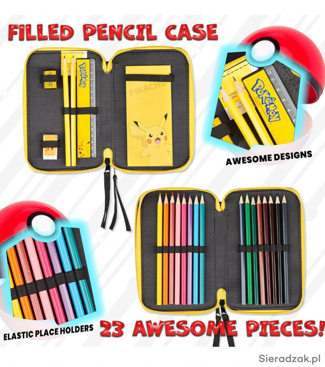 PIÓRNIK SZKOLNY POKEMON PIKACHU DWUKOMOROWY Z PRZYBORAMI SZKOLNYMI