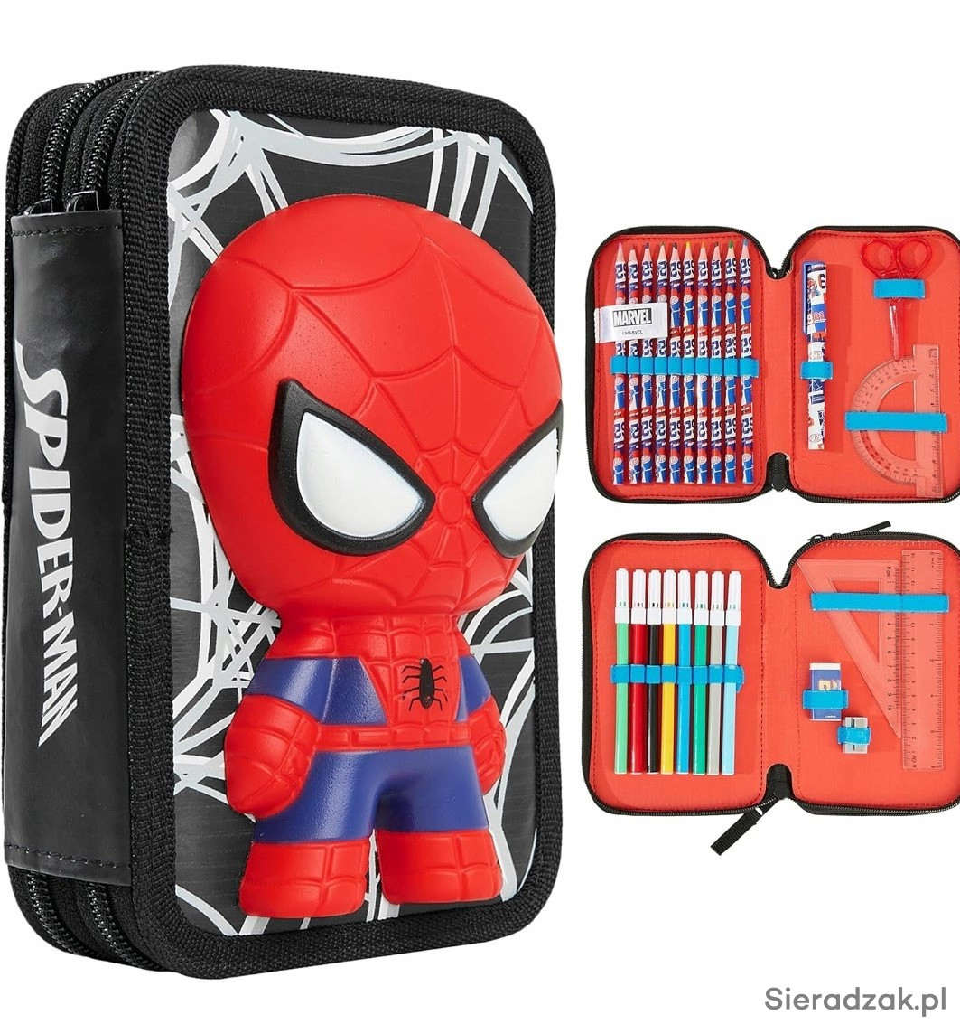 PIÓRNIK SZKOLNY 2-KOMOROWY 3D SPIDERMAN MARVEL Z PRZYBORAMI DLA CHŁOPCÓW