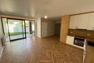- salonu połączonego z kuchnią z wyjściem na taras z ogródkiem,
