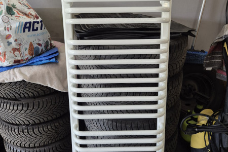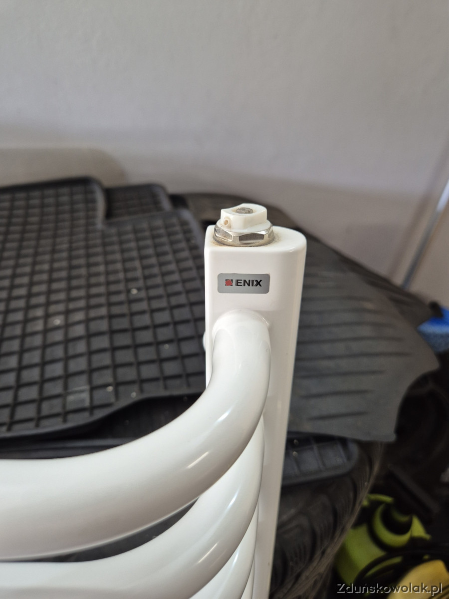 Oferuję roczny grzejnik łazienkowy o wymiarach 122x50. Przyłącze dolne - rozstaw 45cm.