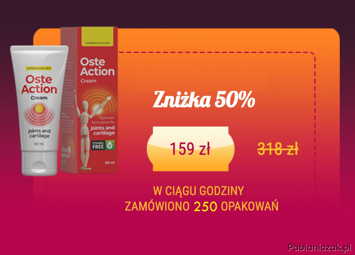 Krem OsteAction został opracowany specjalnie dla osób cierpiących na różne problemy ze stawami, takie jak osteochondroza, artroza i urazy, skutecznie łagodząc ból oraz redukując stany zapalne i napięcie mięśniowe. Jest to wsparcie dla tych, którzy borykają się z przewlekłymi dolegliwościami stawów i mięśni, oferując trwałą ulgę bez obietnic nierealistycznych efektów. Dzięki swojej unikalnej formule krem znacząco poprawia ogólne samopoczucie, koncentrując się na konkretnych problemach zdrowotnych, co czyni go skutecznym rozwiązaniem dla osób poszukujących ulgi i poprawy jakości życia. OsteAction jest zaawansowanym kremem przeznaczonym specjalnie dla osób cierpiących na problemy ze stawami. Dzięki unikalnej formule, skutecznie łagodzi ból wynikający z osteochondrozy, artrozy oraz urazów, jednocześnie zmniejszając stany zapalne i rozluźniając napięte mięśnie. OsteAction koncentruje się na specyficznych problemach zdrowotnych, oferując długotrwałą ulgę bez obietnic nierealistycznych wyników. Produkt jest dedykowany osobom poszukującym efektywnego wsparcia w codziennej walce z dolegliwościami stawów, zapewniając kompleksową opiekę i komfort.
