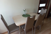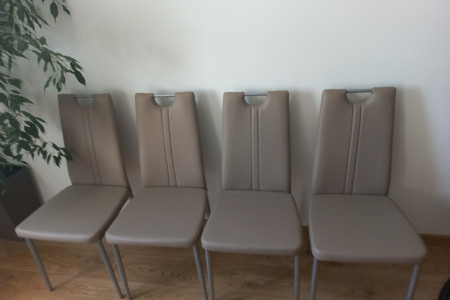Nowe, nigdy nie używane 4 krzesła z praktyczniej ekoskóry w kolorze latte na metalowych nogach.