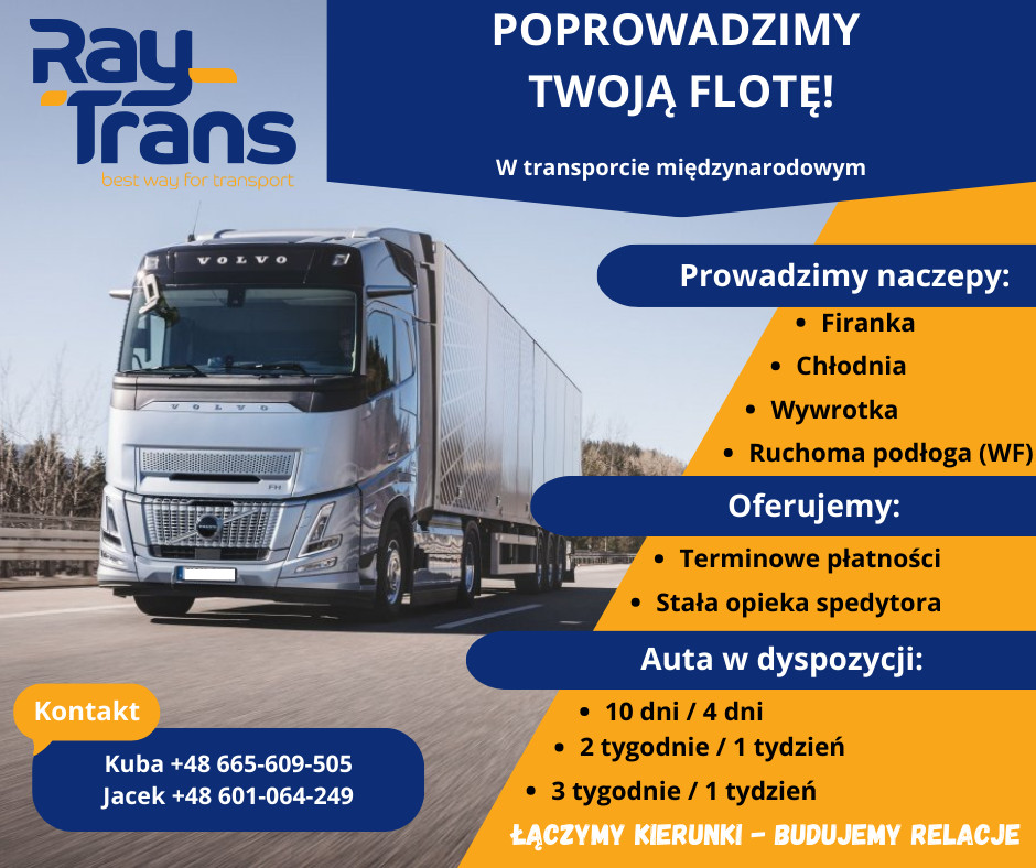 Firma spedycyjna o ugruntowanej pozycji na rynku przyjmie do prowadzenia naczepy: