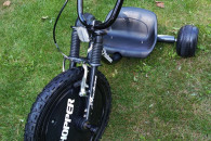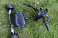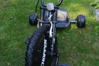 Witam mam do sprzedania Trajkę dla dziecka . Trajka jest używana ale została rozebrana do ostatniej śrubeczki ,wypiaskowana,pomalowana w podkład epoksydowy ,podkład akrylowy ,lakier metalik plus lakier bezbarwny . Zostały zrobione nowe grafiki które są zabezpieczone lakierem bezbarwnym. Założona nowa opona przednia 16 cali. ( w gratisie dokładam drugą opone plus drugą dętkę ) także nowa linka hamulcowa i pancerz hamulcowy.Trajka wygląda bardzo ładnie ,efektownie .Lakier jakim została pomalowana rama to ciemny grafit w metaliku , reszta elementów polakierowana czarnym lakierem akrylowym w połysku.Fotel jest regulowany w kilku wriantach zależności od wzrostu dziecka. Przedni widelec jest imitacją amortyzatora jest to sztywny widelec. Polecam