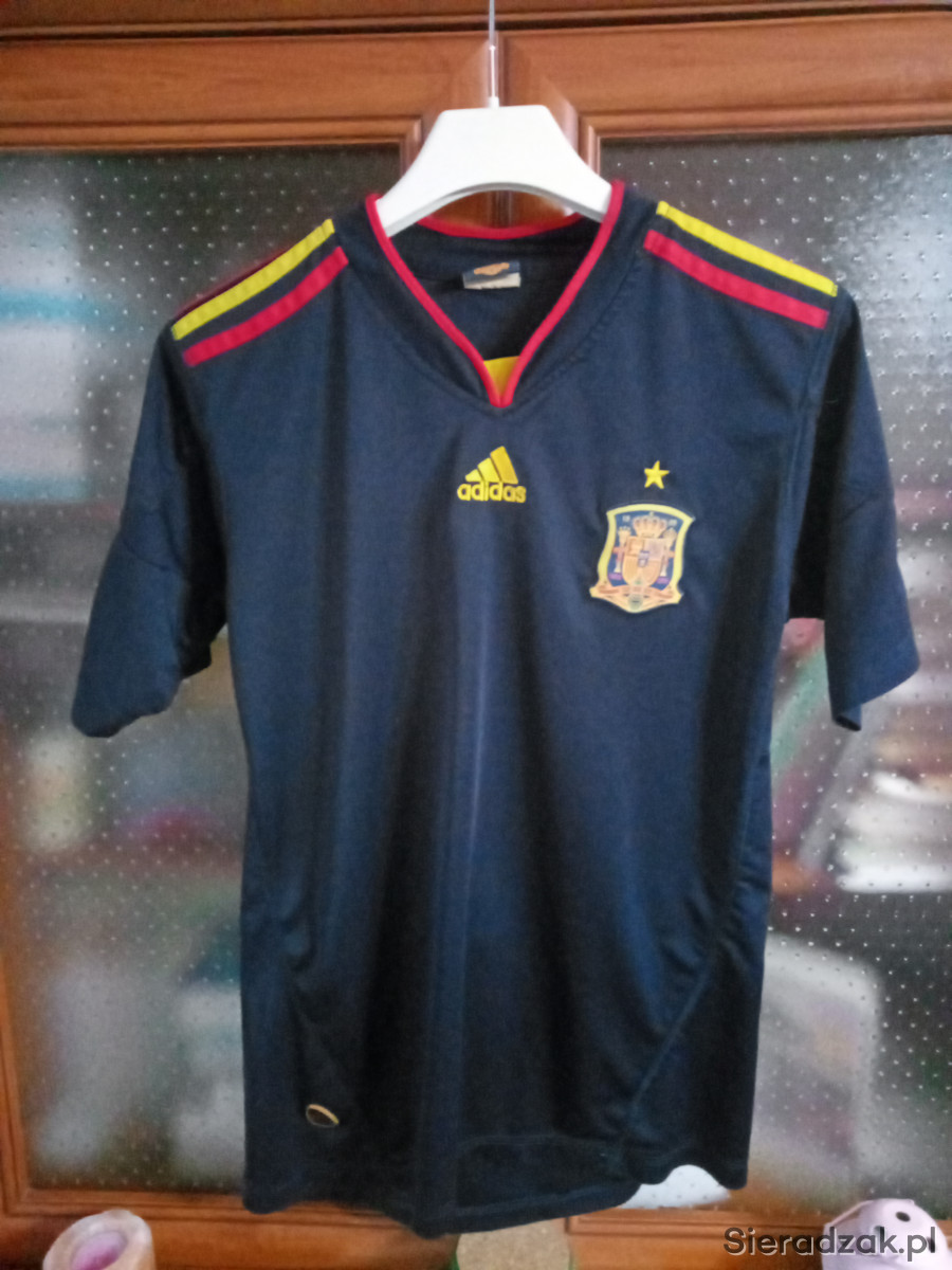 Na sprzedaż używana koszulka reprezentacji Hiszpanii,stan dobry,rozmiary szerokość pod pachami 48x2, długość od ramienia 66,na dole szerokość 47x2,w ramionach szerokość (od szwa do szwa gdzie wszyty rękawek 40x2.
