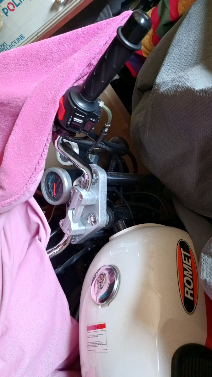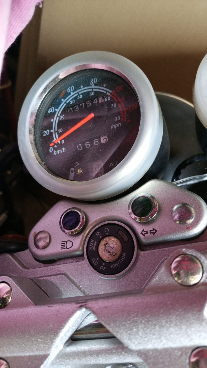 Od tej pory przejechał zaledwie 3700km. Silnik jest nadal na dotarciu. Kupiłem go z myślą , że będzie jeździła nim żona a już 2 lata stoi w jednym miejscu. Jest jak nowy. Oryginalny akumulator już pewnie do wymiany. Paliwo w zbiorniku również. Nigdy nie miał robionego przeglądu bo nie było takiej potrzeby. OC ( około 75zł/rok) ważne do przyszłego roku. Zaraz po kupnie w salonie została zmodyfikowana dźwignia zmiany biegów aby było bardziej komfortowo. Nigdy nie stał na dworzu i na deszczu. Od nowości był tylko dwa, może trzy razy myty miękką szczotką. Motocykl lekki, niski , fajny dla początkujących. Spalanie około 2,5 l/100 km. Myślę, że po dotarciu jeszcze spadnie.