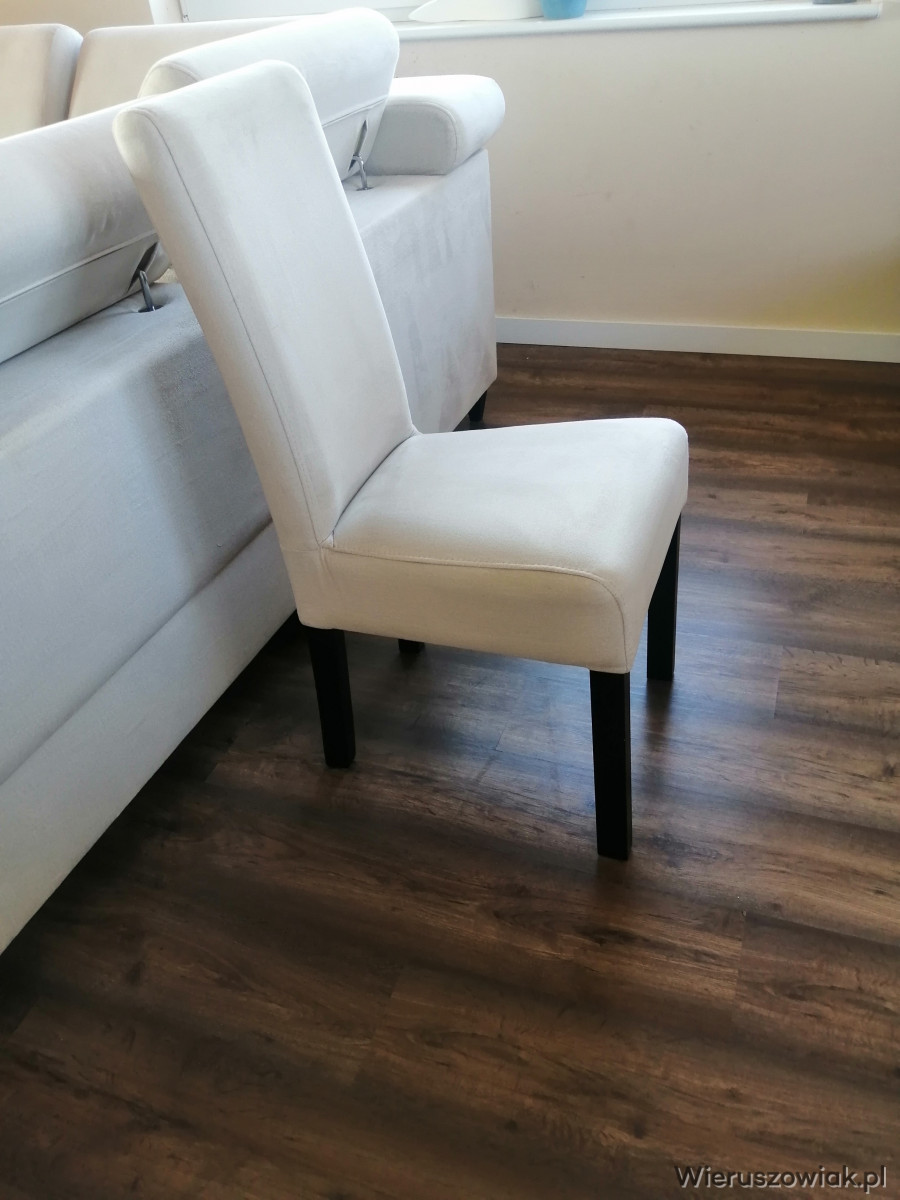 Krzesła: komplet 10 sztuk, solidne i stabilne, pasujące stylem do kanapy.