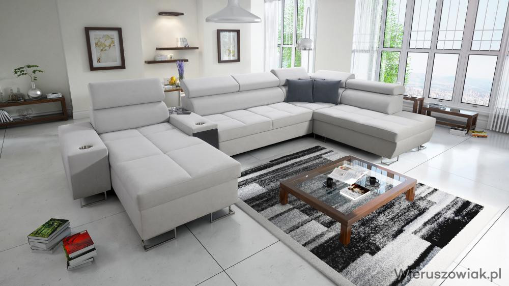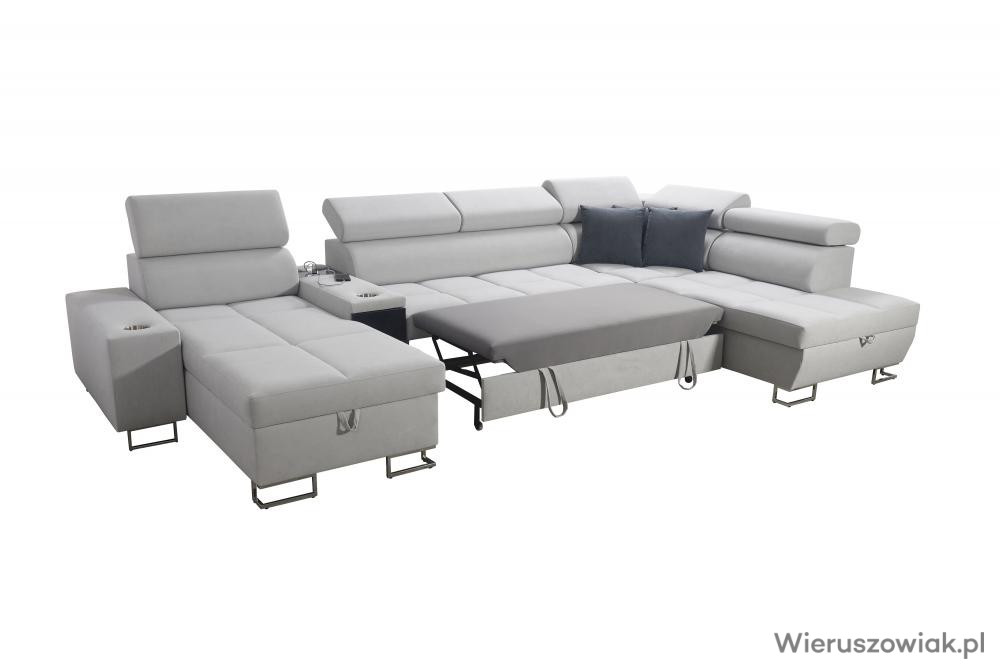 Kanapa posiada funkcję barku na klik, 2 kubki oraz wejście na USB i gniazdo elektryczne.
