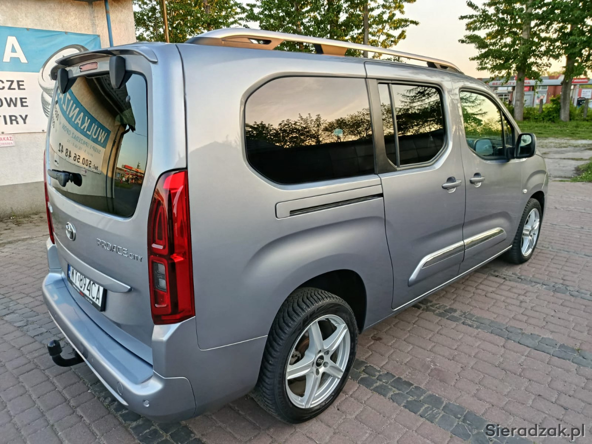 Na sprzedaż zadbana Toyota Proace City Long Family z 2021 roku, silnik benzynowy 1.2 o mocy 110KM.