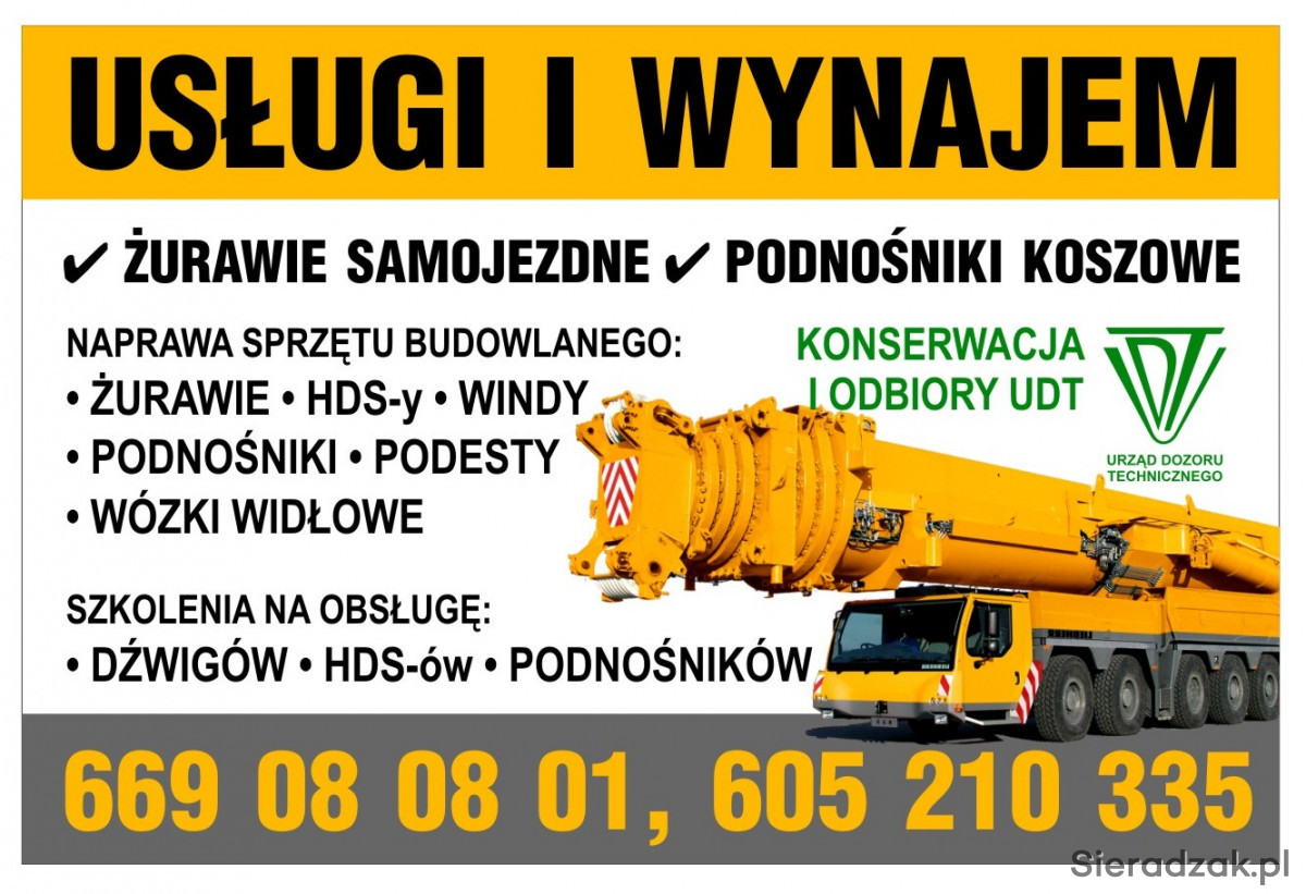 Żurawi: samochodowych, przenośnych (HDS), wieżowych