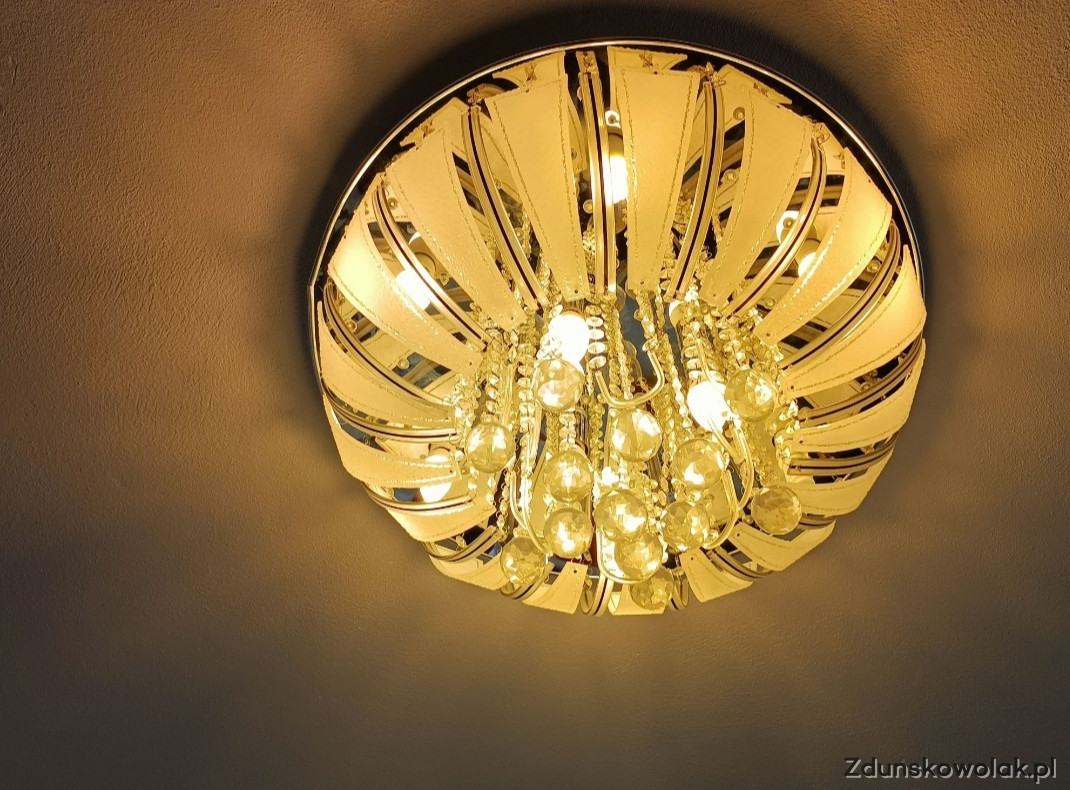 Elegancka, nowoczesna lampa sufitowa z funkcją LED. Wykonana z wysokiej jakości materiałów, z dekoracyjnymi kryształkami, która nada wnętrzu niepowtarzalny charakter. Idealna do oświetlenia salonu, sypialni lub innego pomieszczenia.