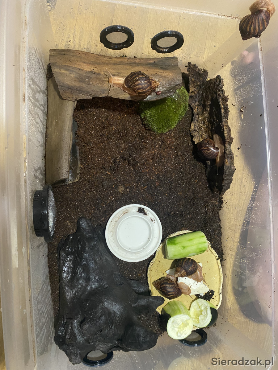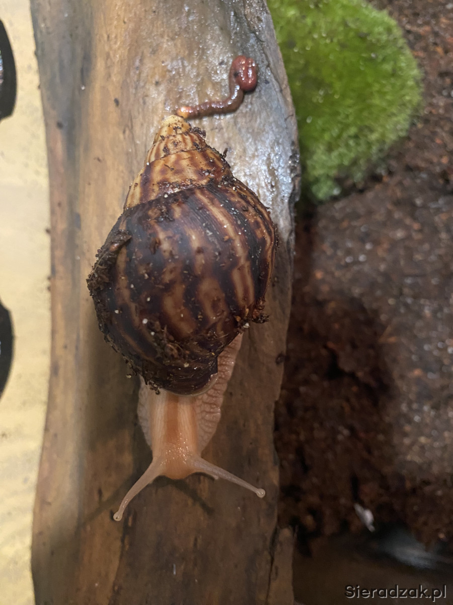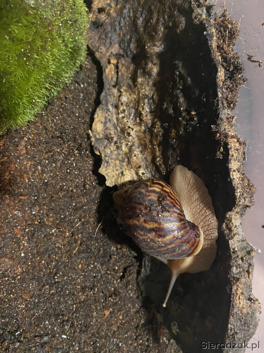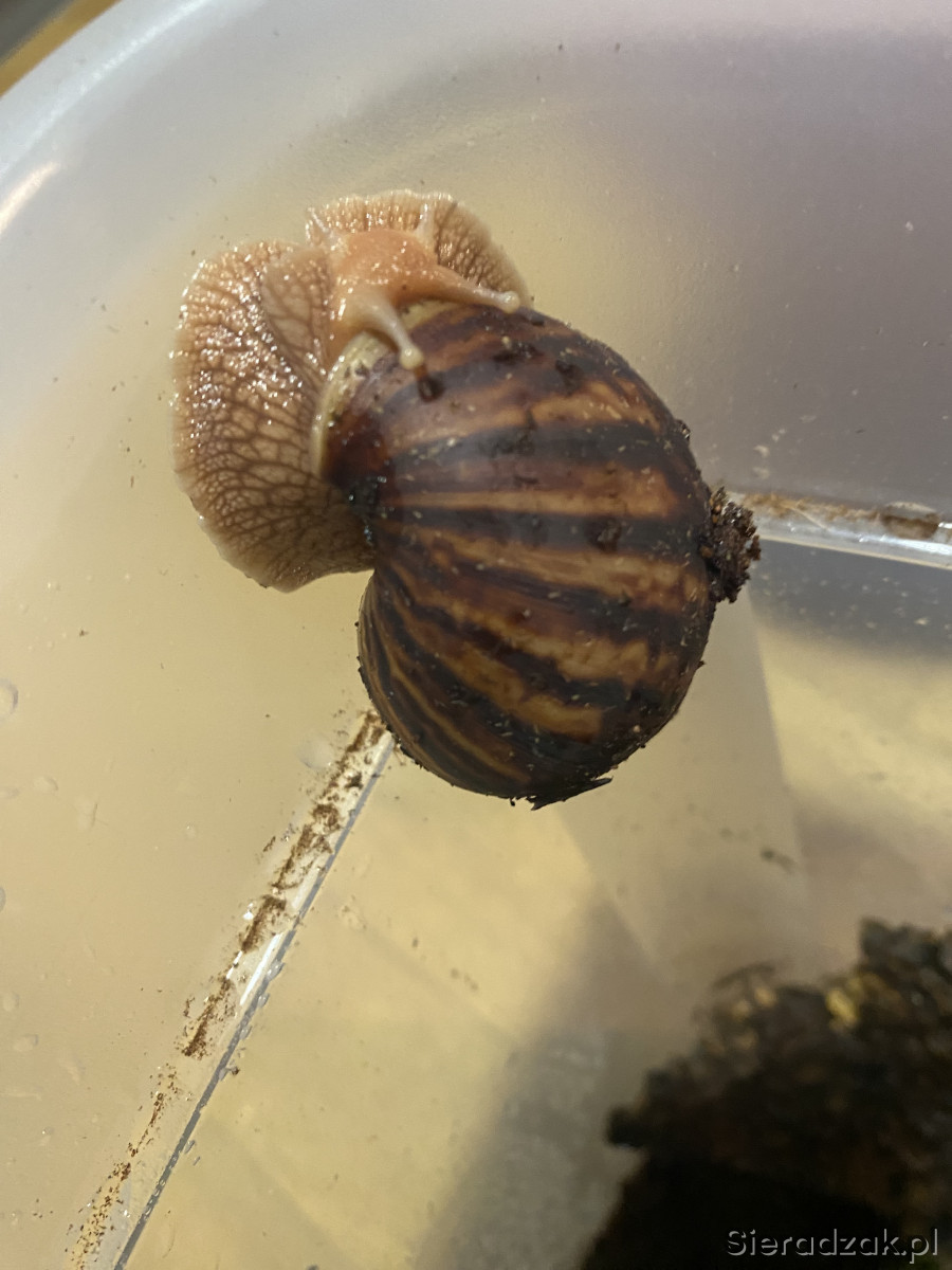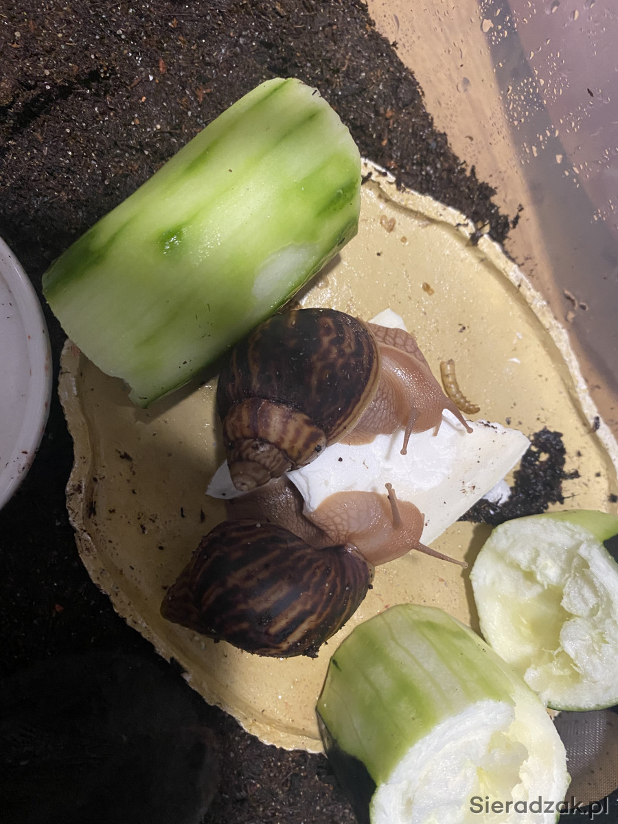 Sprzedam ślimaka afykańskiego. Osobniki mają obecnie około 3 miesiące. Długość skorupy ok. 3 cm. Szybko rosną. Dorosły osobnik osiąga rozmiary ludzkiej dłoni. Odbiór osobisty w Sieradzu.
