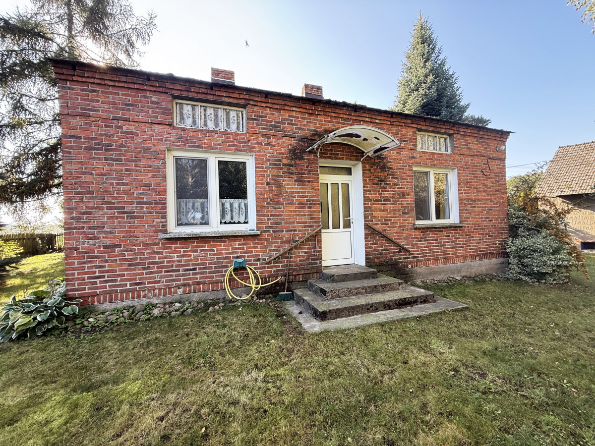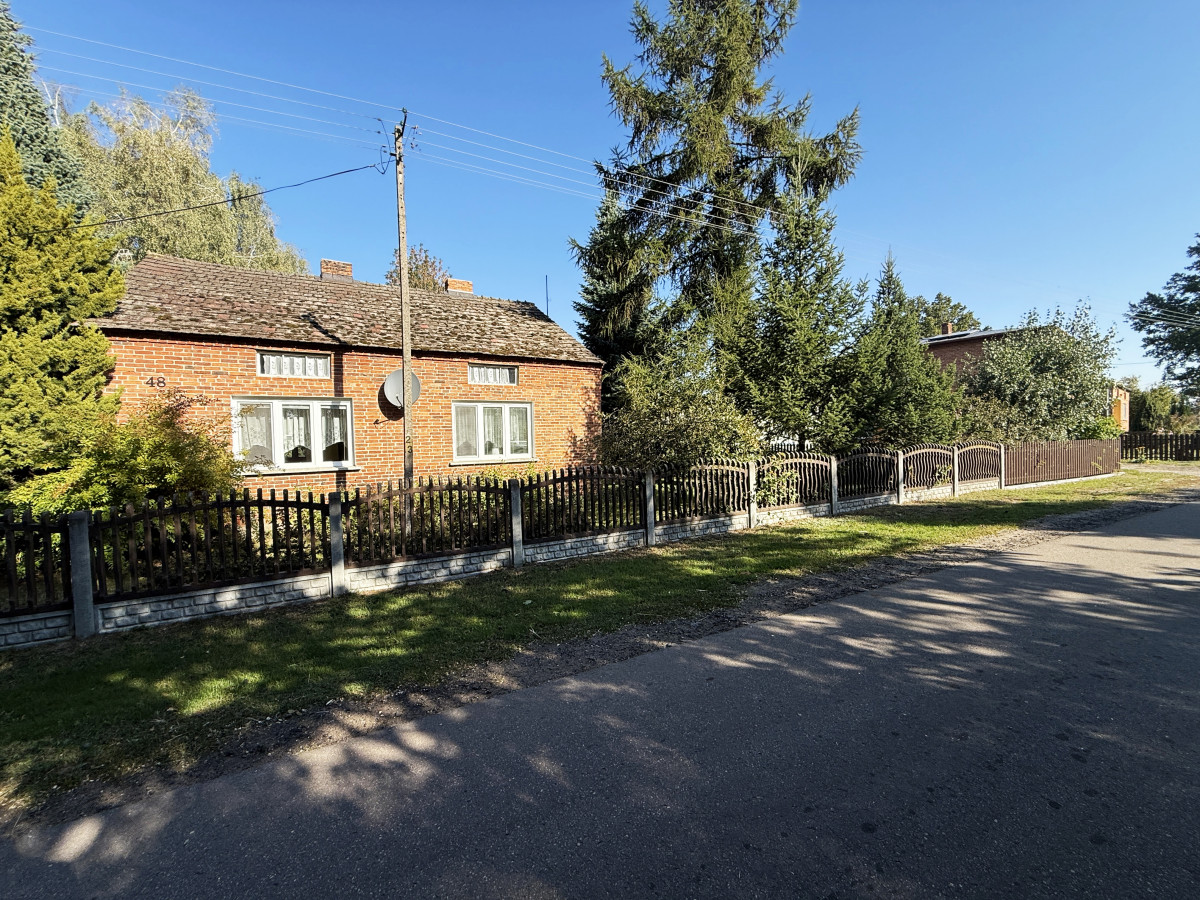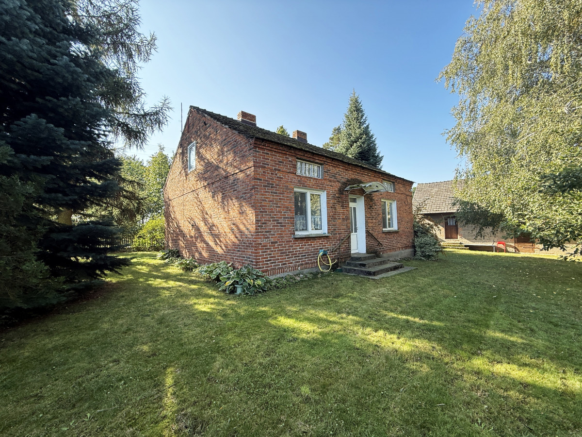 Budynek mieszkalny parterowy z użytkowym poddaszem o powierzchni około 90 m2, pobudowany w roku 78' z cegły (mur podwójny), na dachu dachówka cementowa, okna PCV dwuszybowe. Budynek nie jest podpiwniczony. Ogrzewany za pomocą trzech pieców typu koza usytuowanych w kuchni i pokojach.