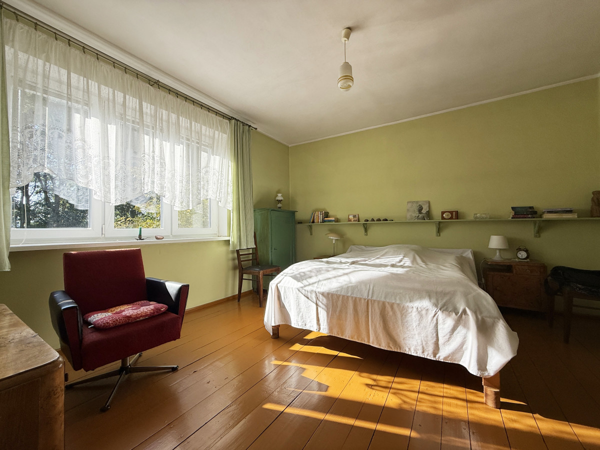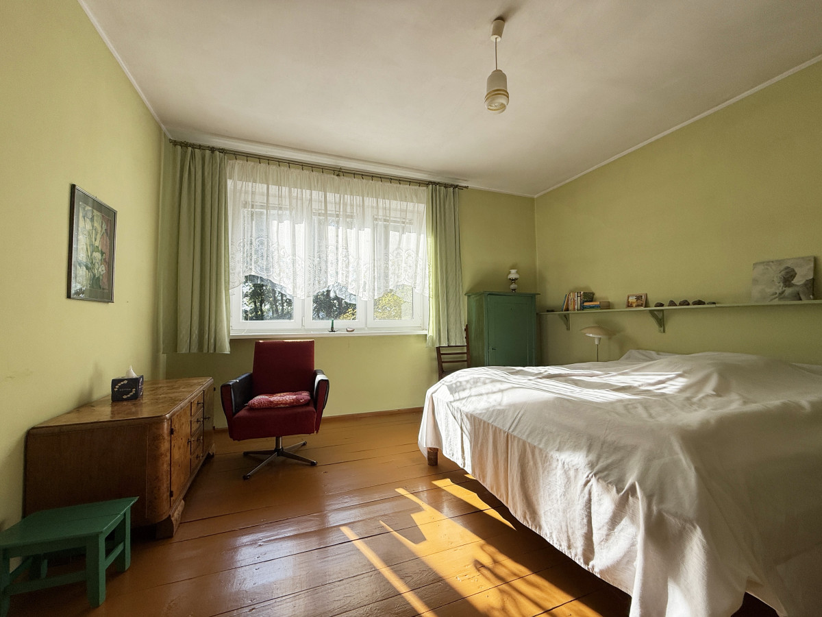 Działka na której usytuowana jest nieruchomość to 2500 m2 do zagospodarowania, o szerokości frontowej 35 m z dużym potencjałem, na działce znajduje się dużo starych drzew które nadają wyjątkowego klimatu temu miejscu.