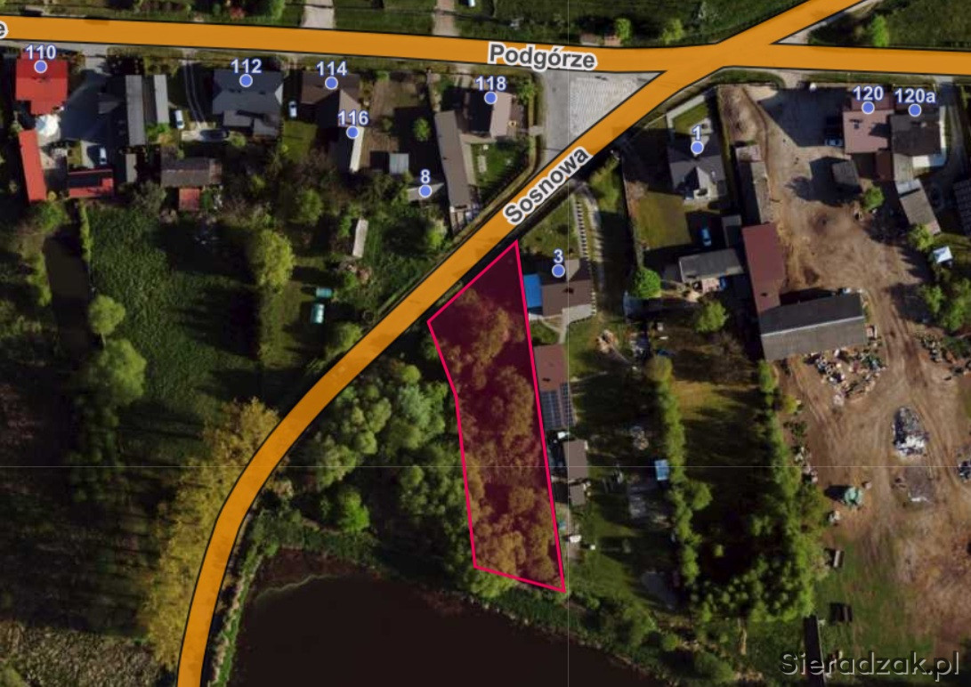 Działka położona przy ul. Sosnowej, w otoczeniu zabudowy jednorodzinnej. Częściowo zadrzewiona – decyzja o tym, co pozostawić, a co usunąć, należy do Ciebie.