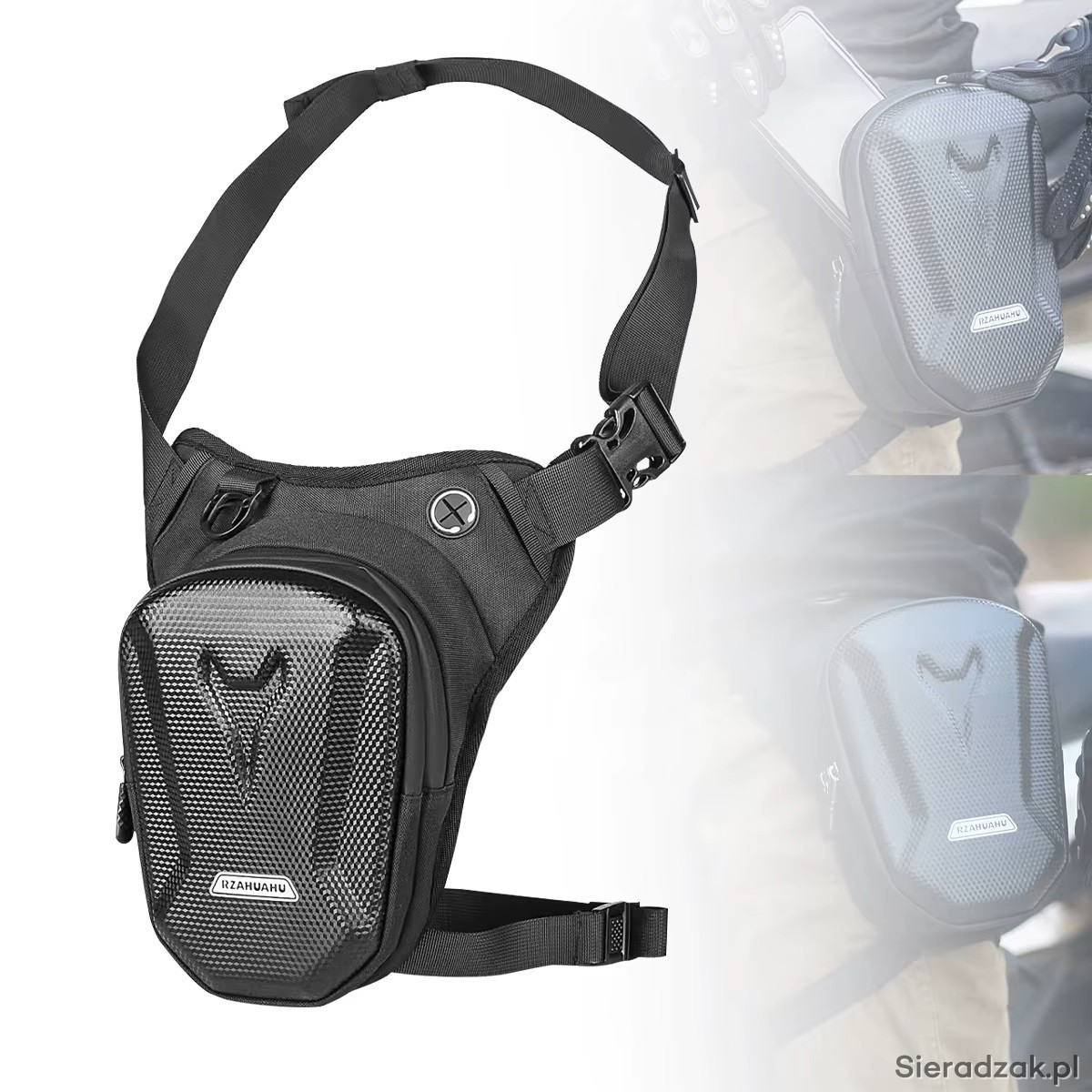 Sprzedam nową torbę przypinaną paskiem do talii i uda. Na prawą lub lewą stronę. Oba paski posiadają duży zakres regulacji.