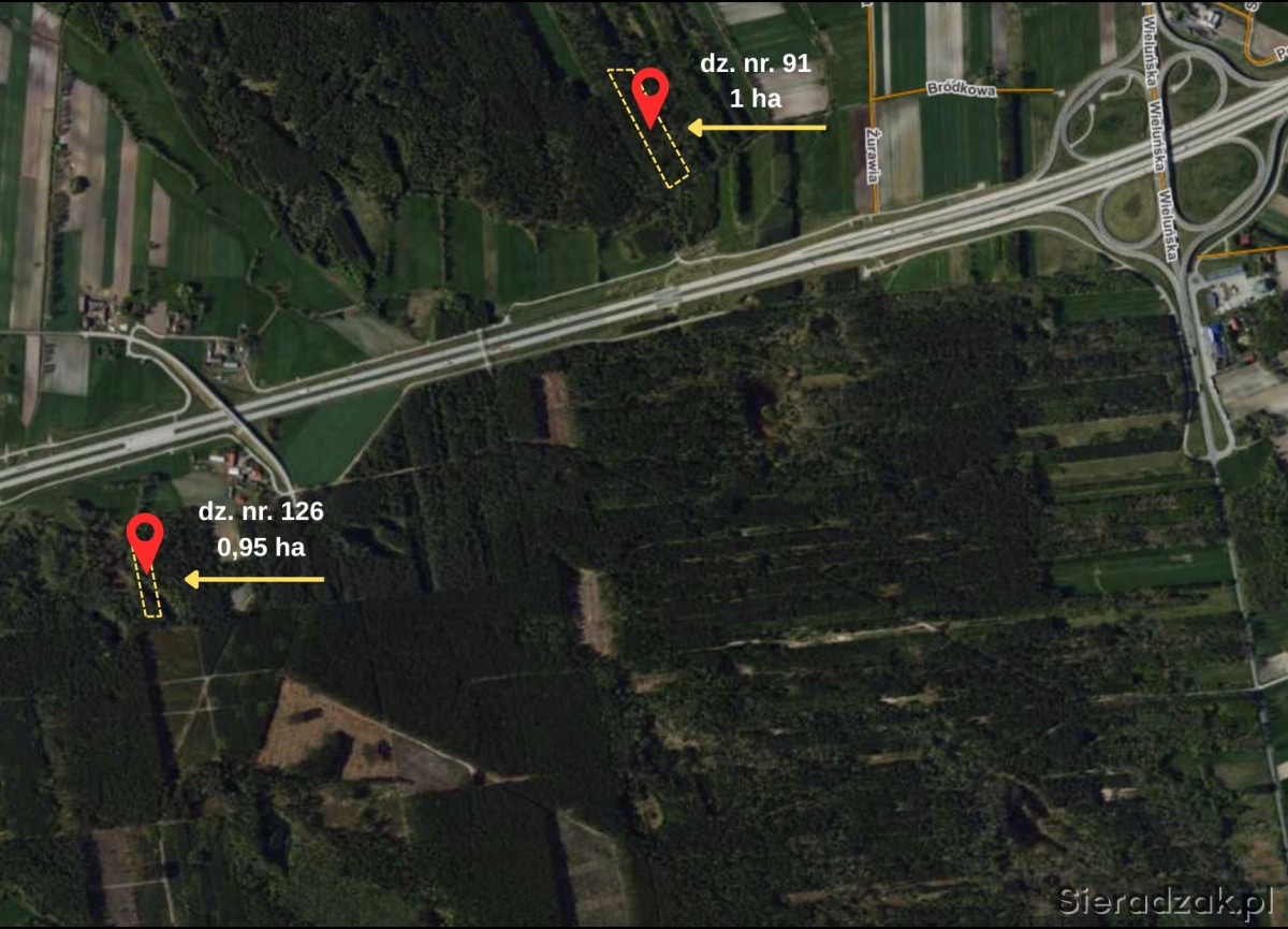 Przedmiotem sprzedaży są dwie działki leśne o nr. ewidencyjnych 126 oraz 91, które łącznie dają powierzchnie 1,95 ha.