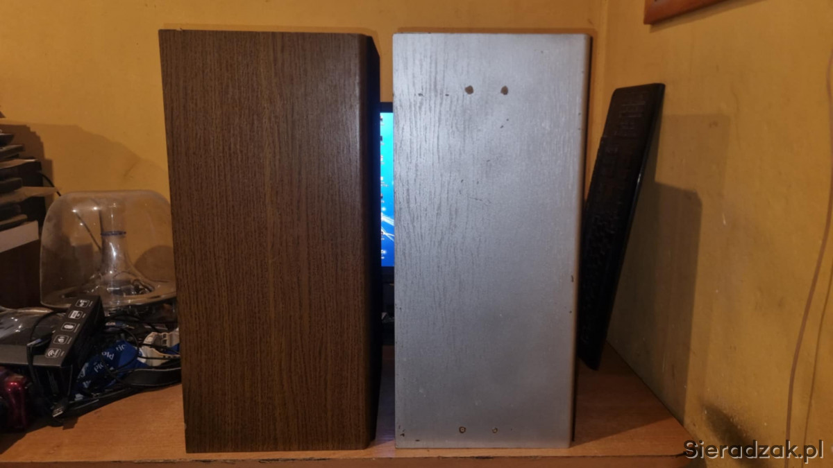 Kolumny sprawne w stanie jak na foto. Obudowy jedna pomalowana sprayem na srebrno. Poza tym w pełni sprawne grają rewelacyjnie. Polecam.