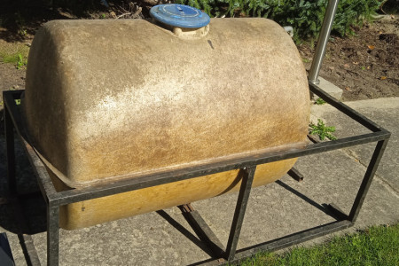 duza beczka ze stelazem metalowym do zbierania