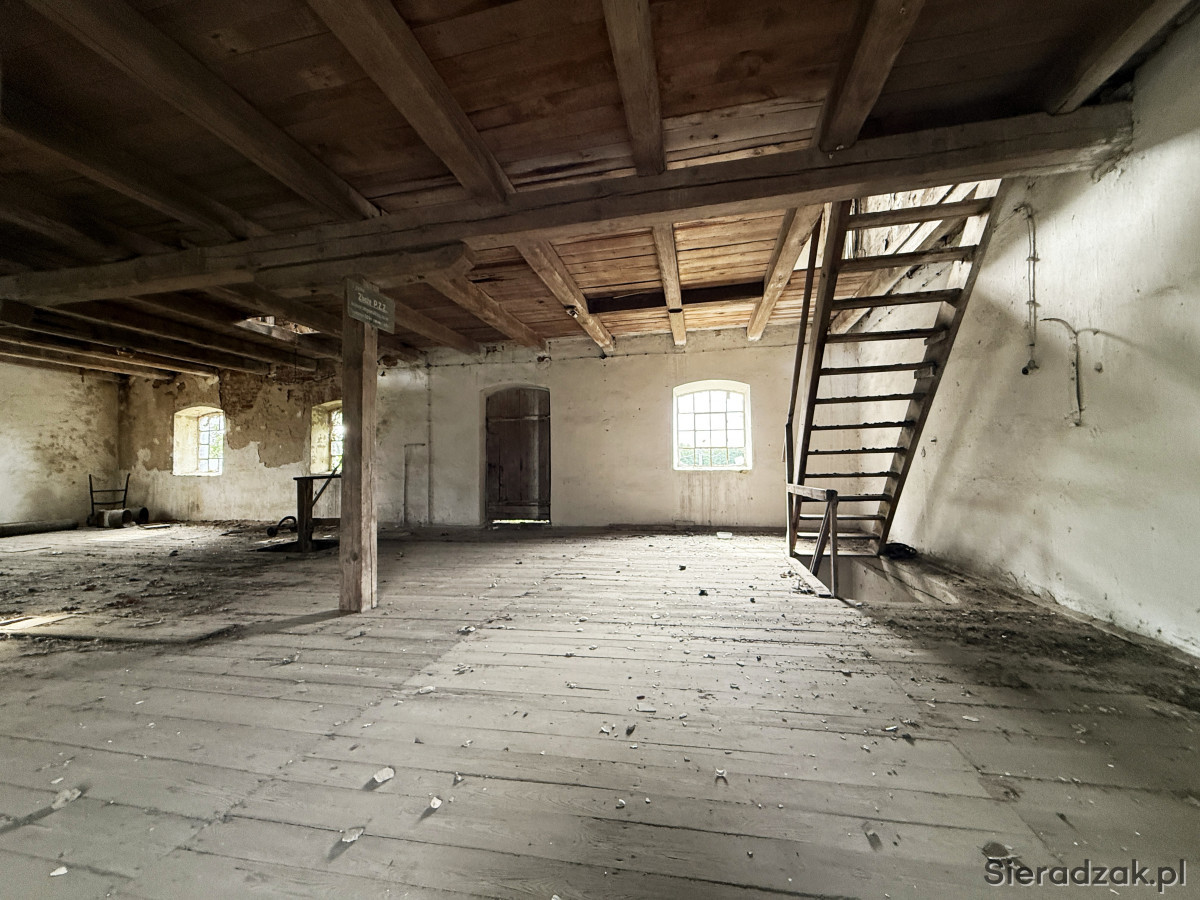 Budynek magazynowy - murowany z cegły o powierzchni zabudowy 135 m2 oraz powierzchni użytkowej 310 m2. Budynek prosperował jako magazyn zbożowy. Stropy drewniane. Od dawna nieużytkowany.