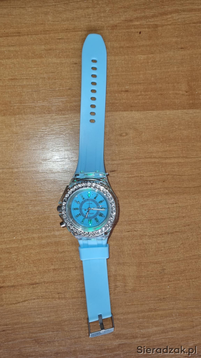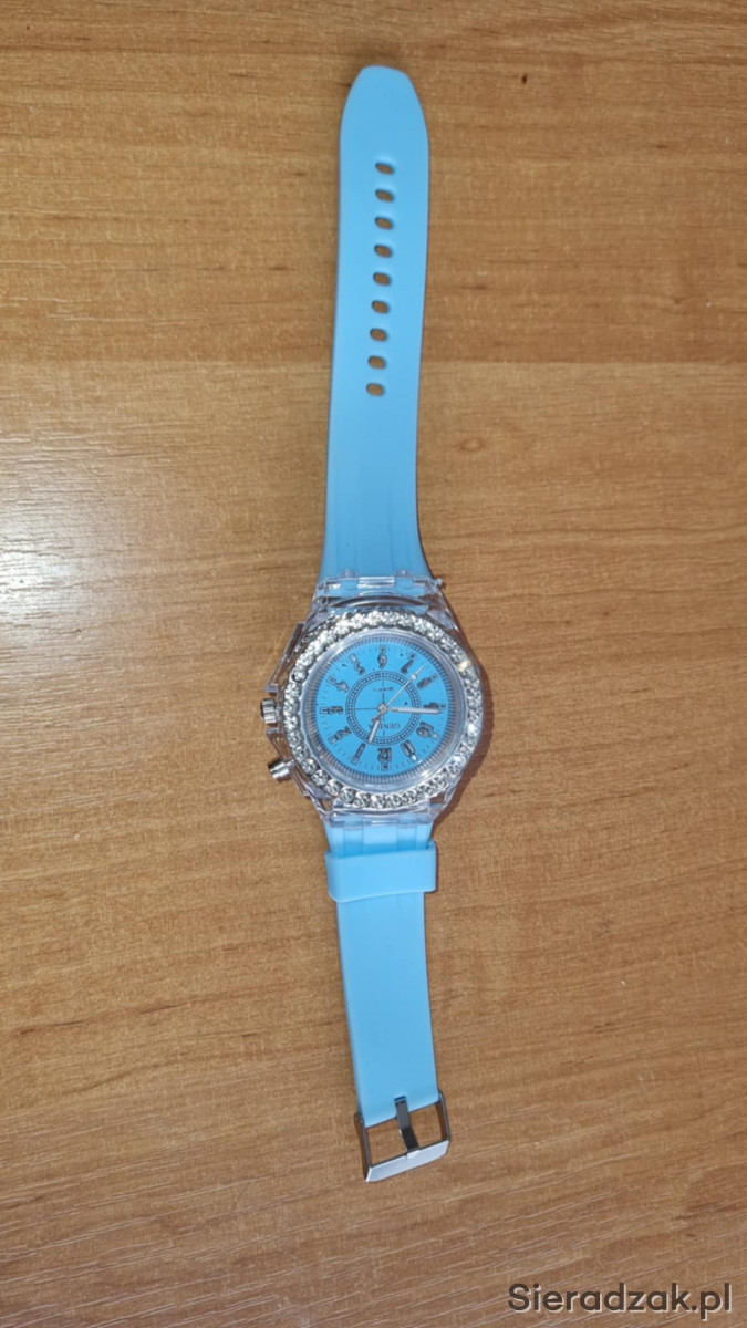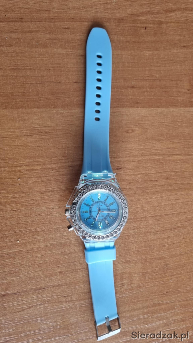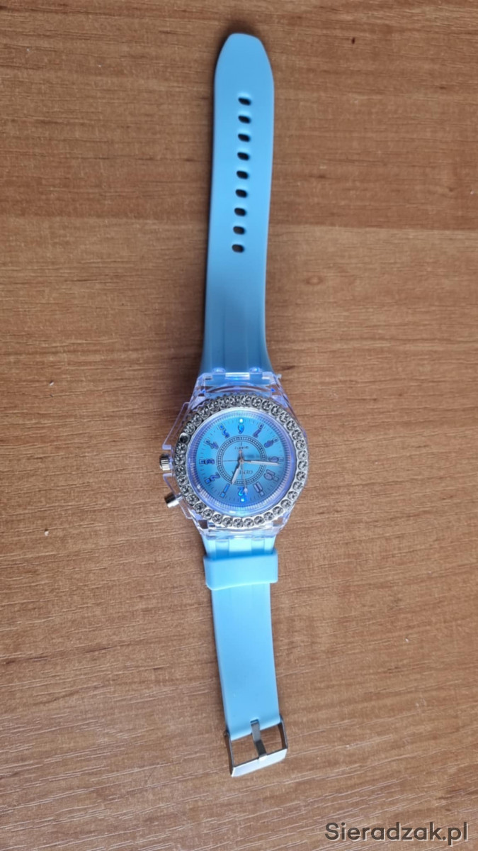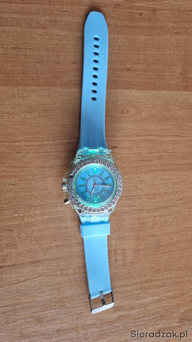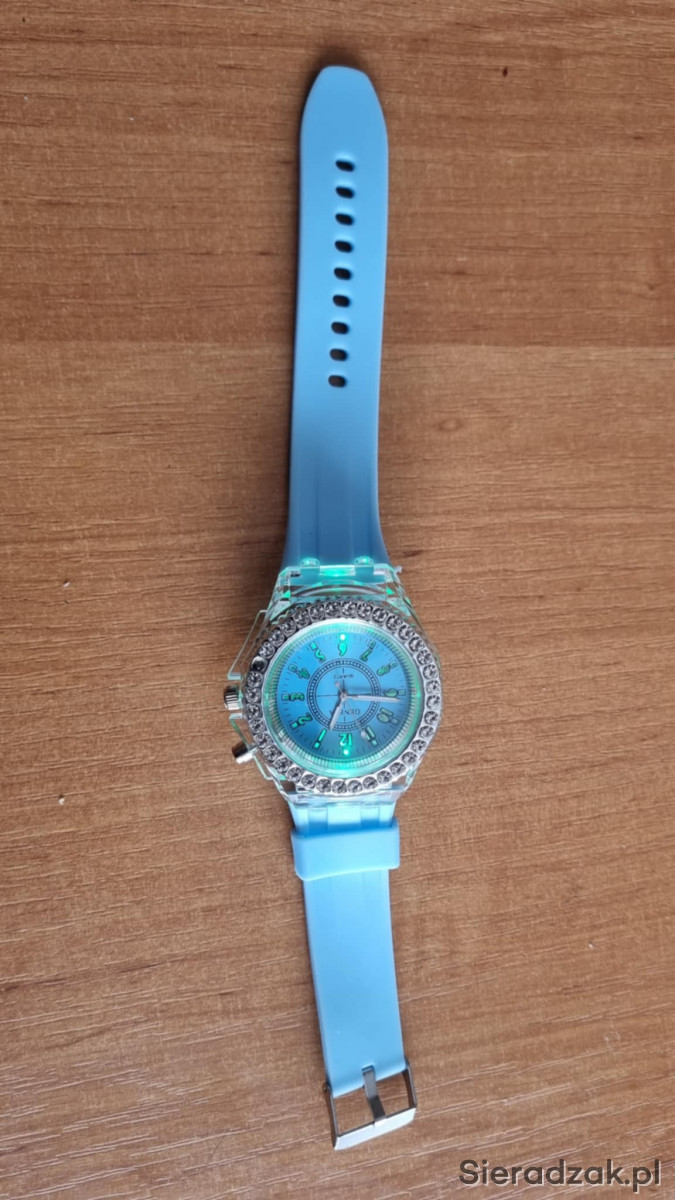 Zegarek damski podświetlany piękny z kolorowym podświetleniem. Polecam